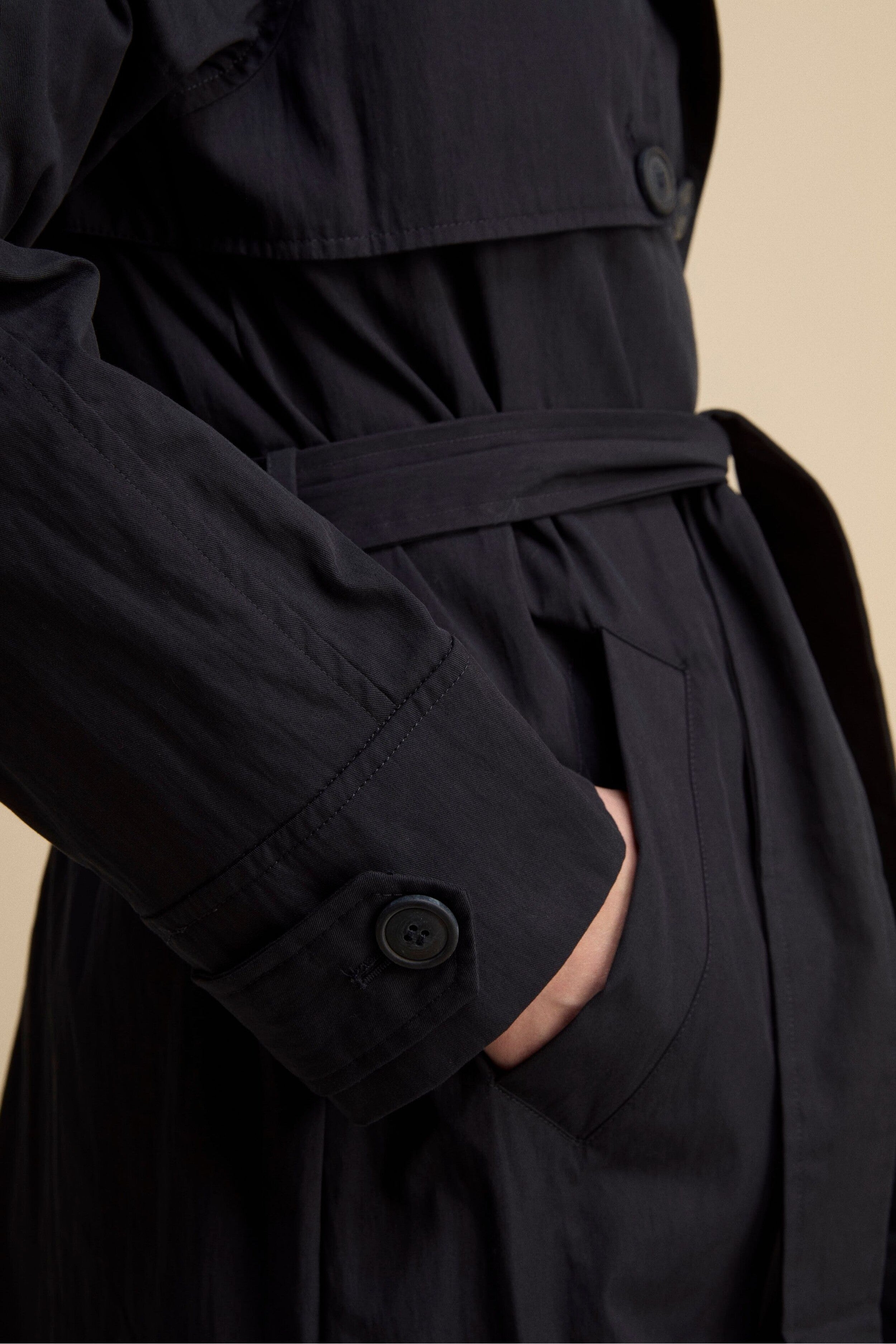 Midi Double-Breasted Trench Coat with Belt - Navy blue