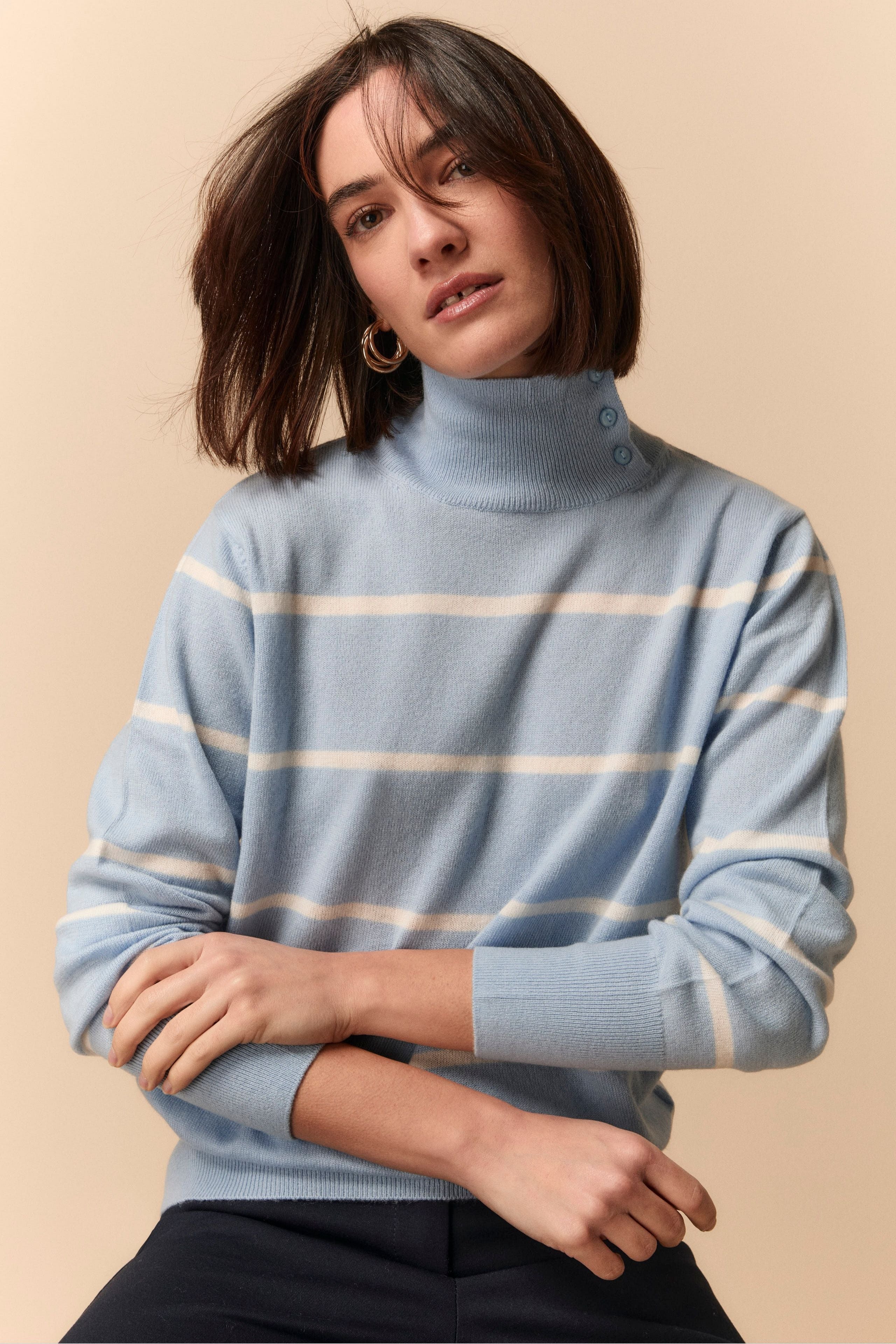 Patterned Turtleneck Sweater in Wool and Cashmere - Light blue stripe