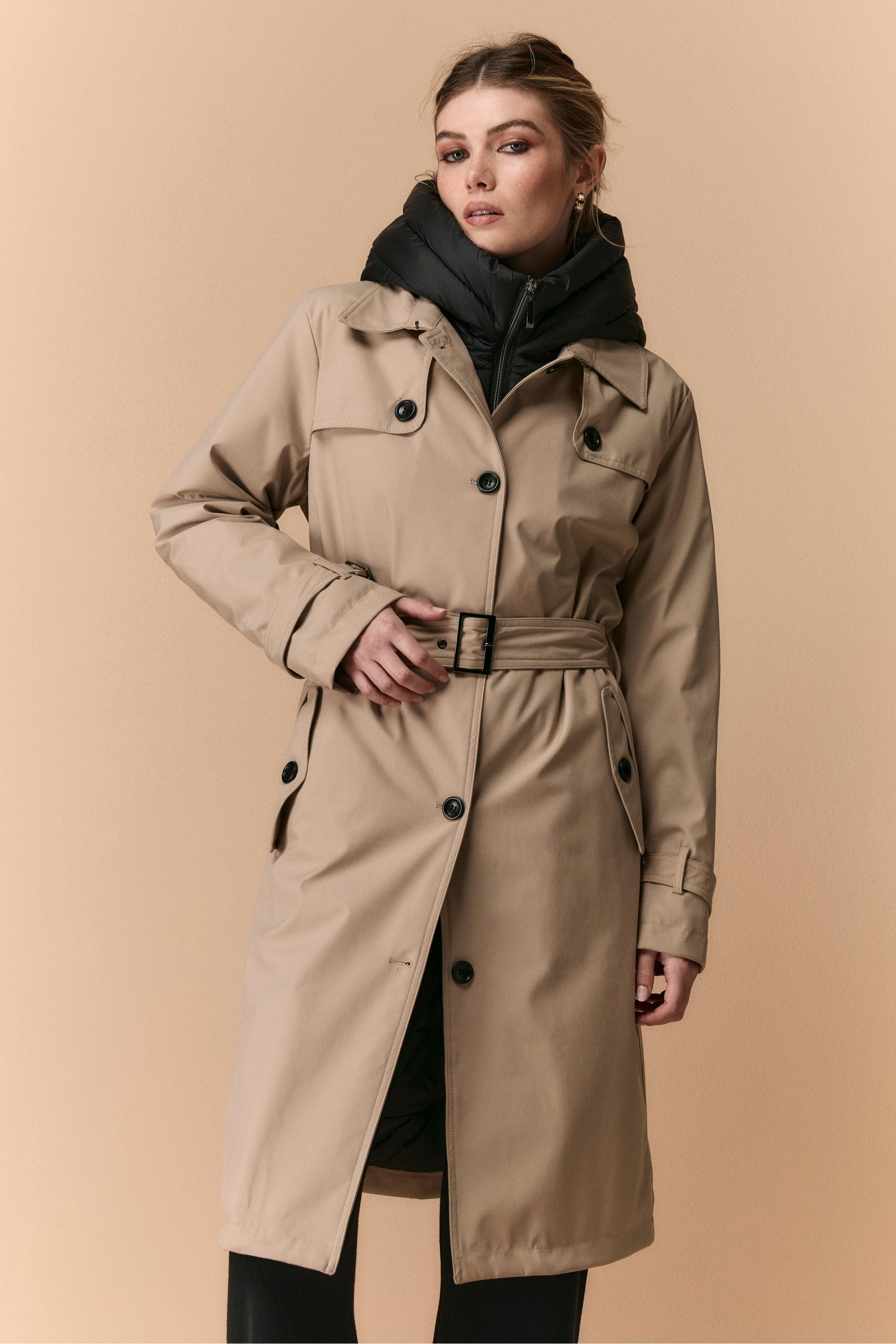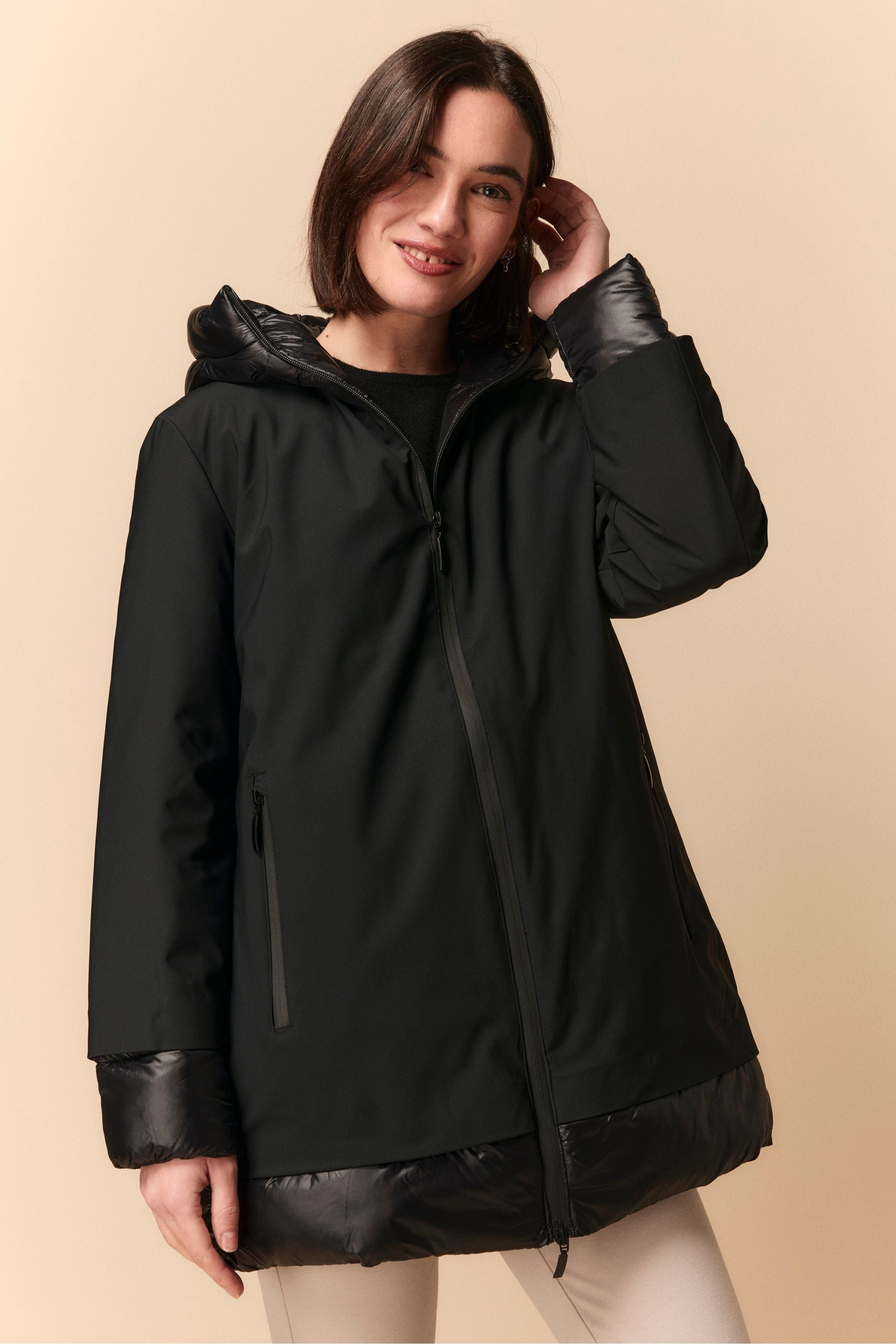 Wool Wrap Coat - BLACK