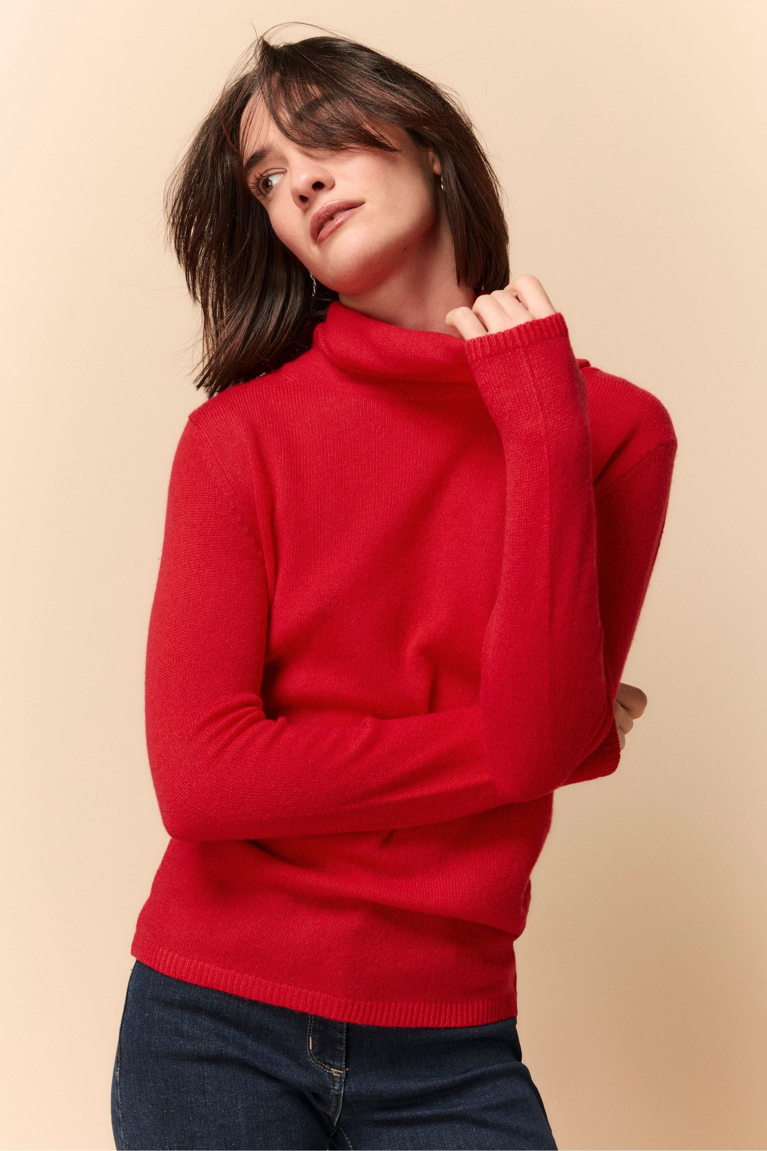 Soft Turtle Neck Sweater in Cashmere - Coral pink