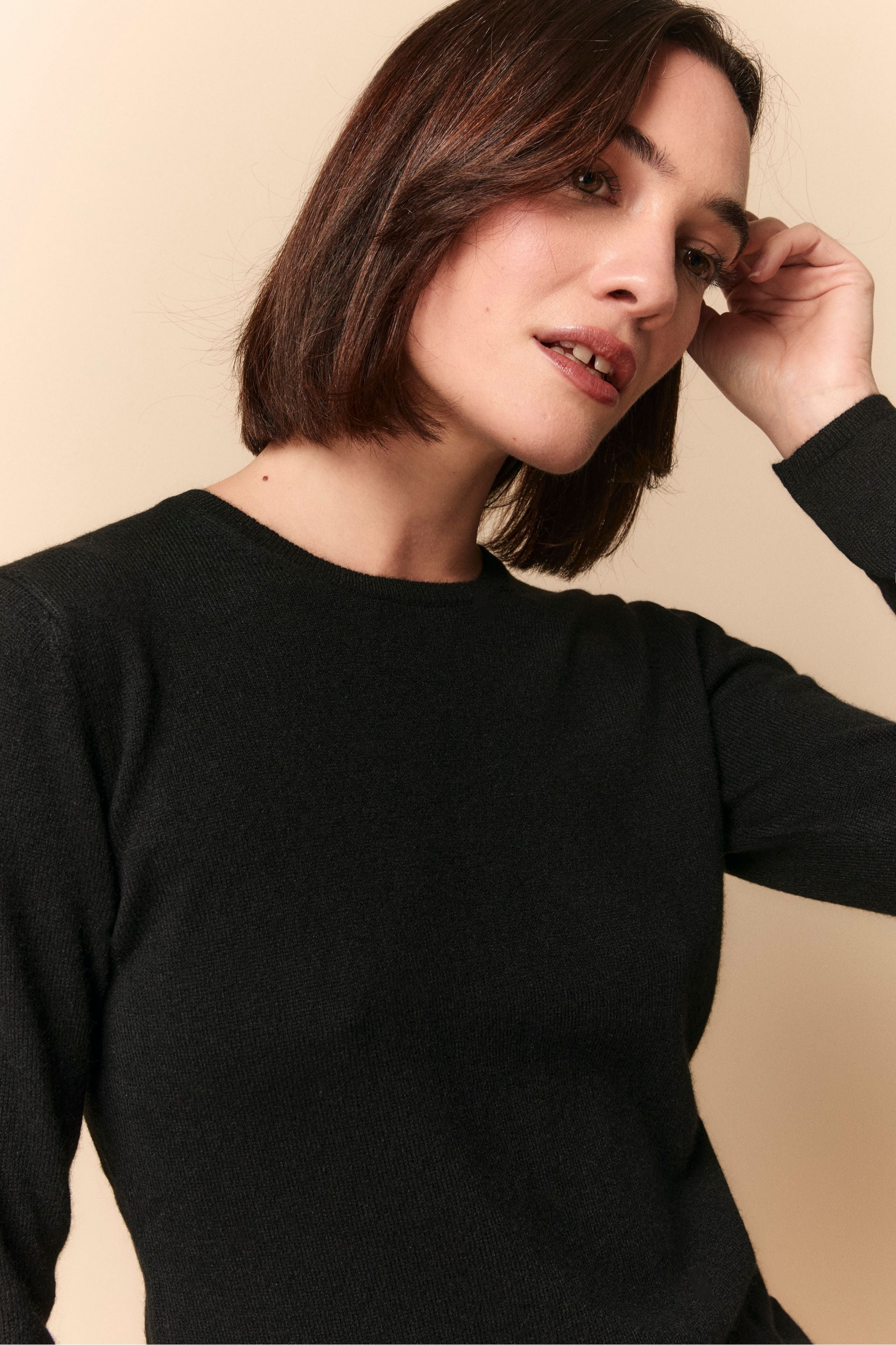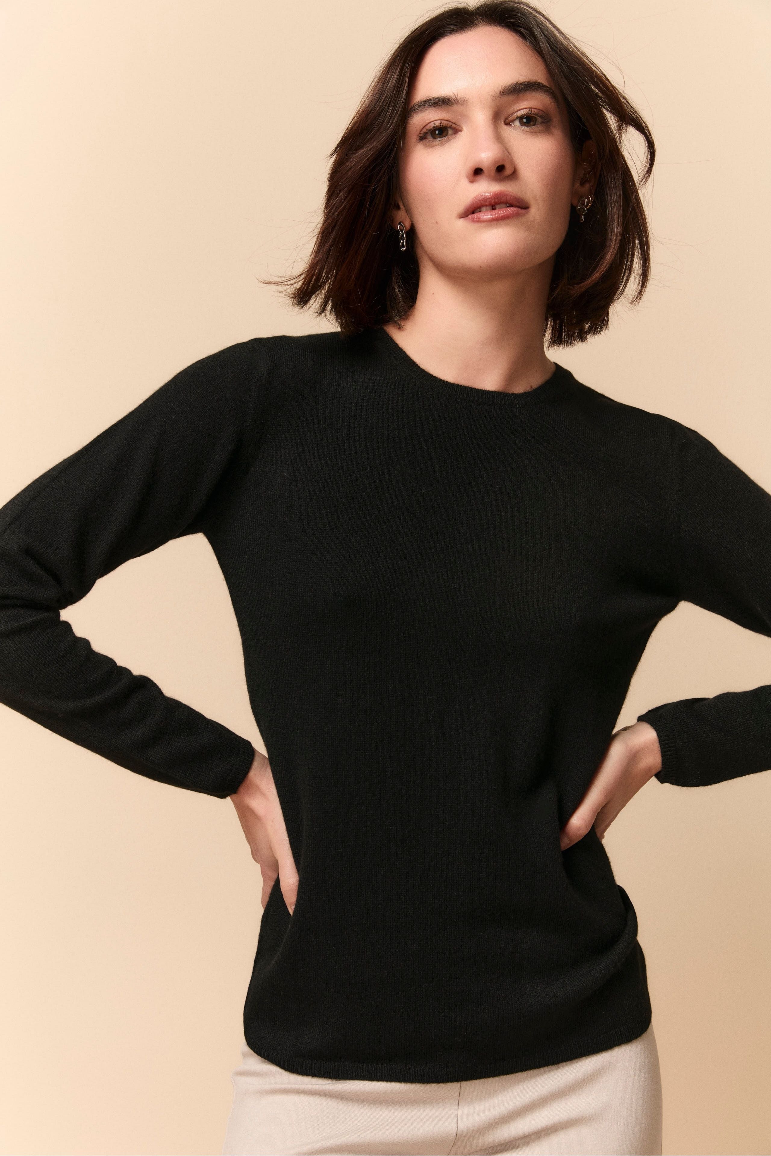 Boat Neck Sweater in Cashmere - Light brown