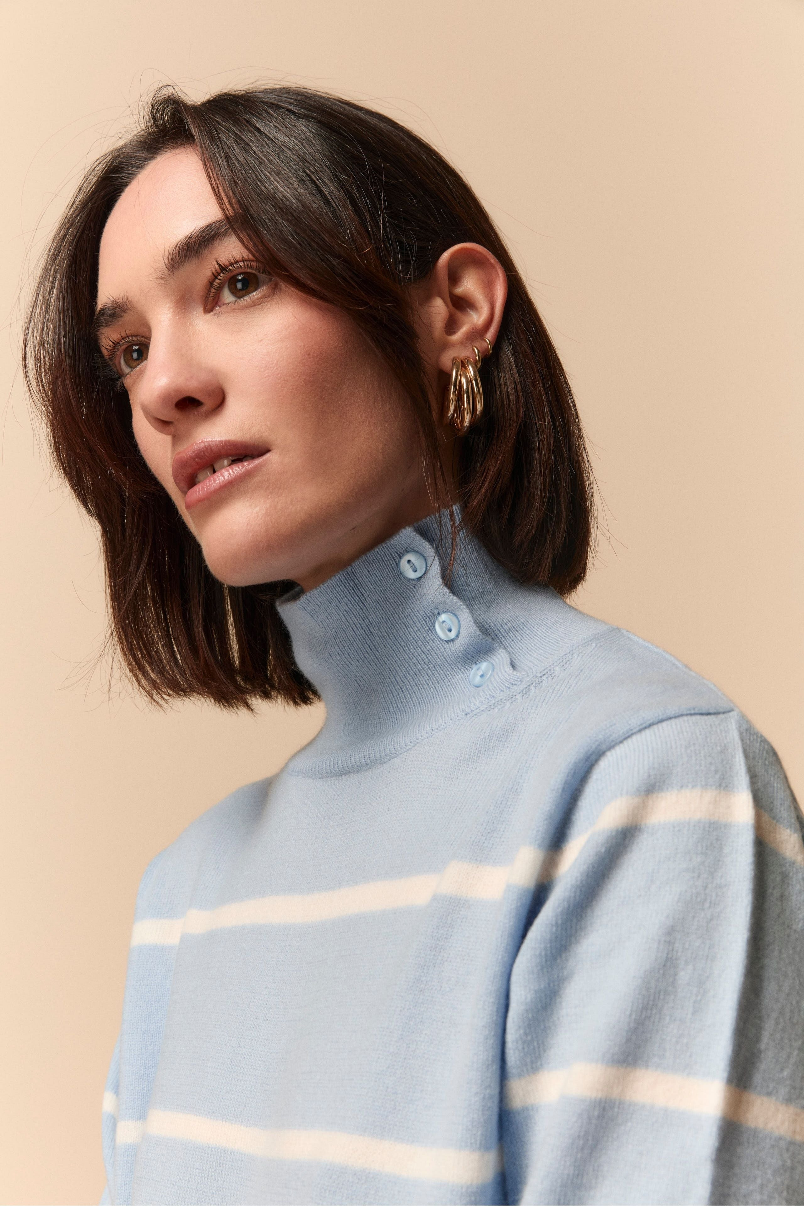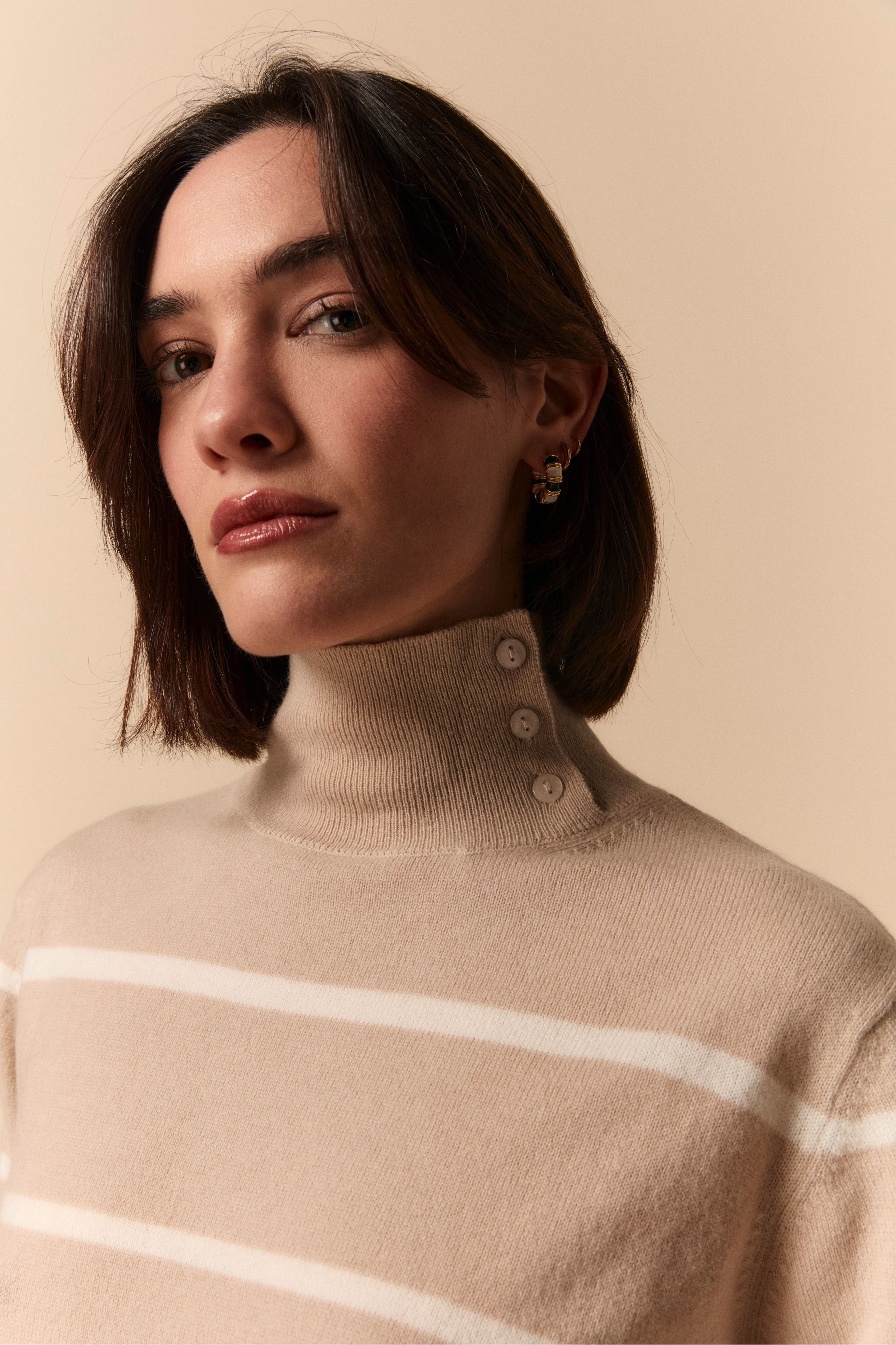 Patterned Turtleneck Sweater in Wool and Cashmere - Beige stripe