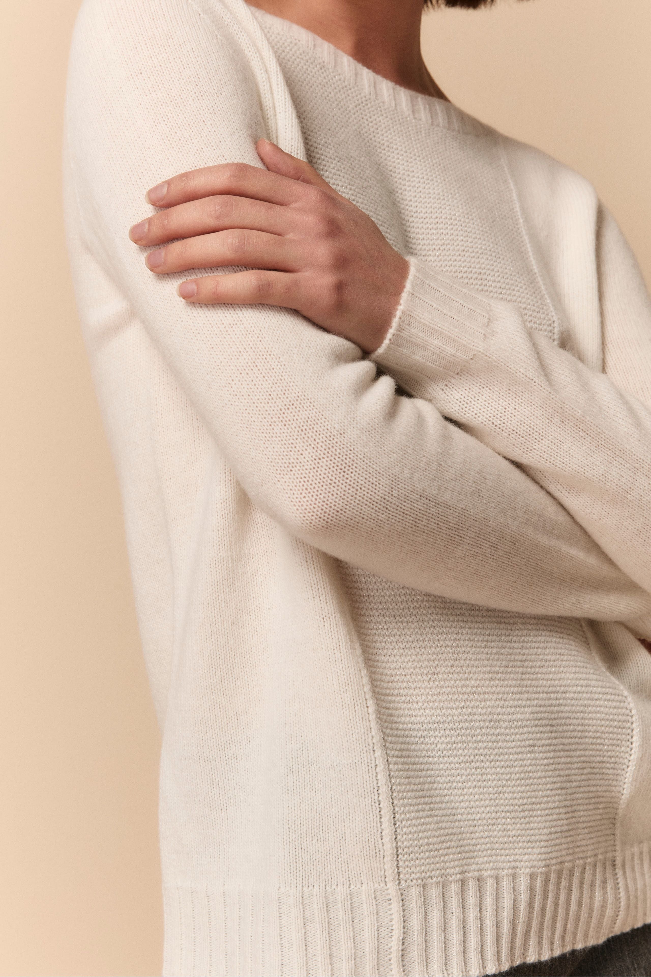 Ribbed Crew Neck Sweater in Wool and Cashmere - Cream white