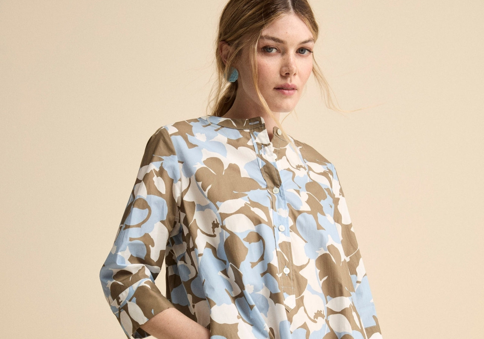 Oversize-Bluse aus Gaze mit Patten - CREAMOversize-Bluse aus Gaze mit Patten - CREAM