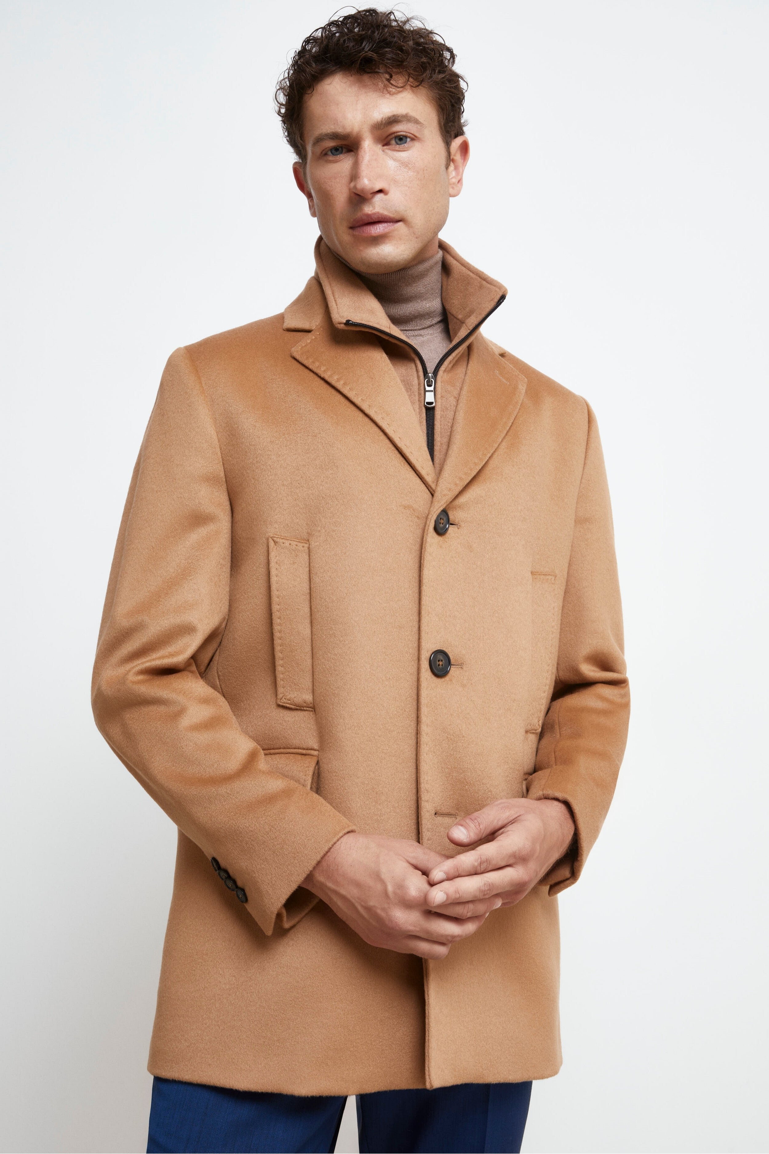 Cape aus Wolle und Kaschmir mit Futter und Kapuze - MANDEL