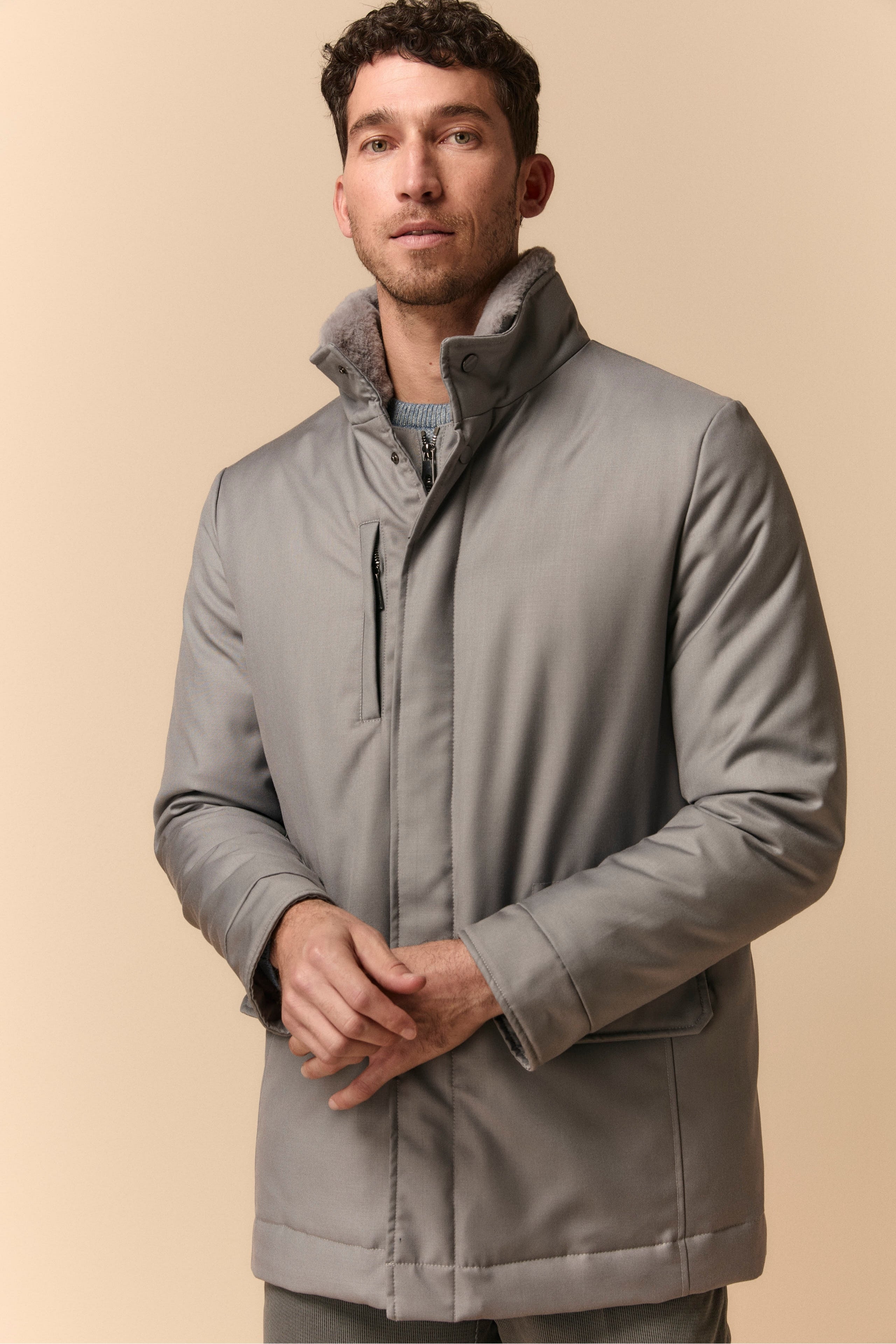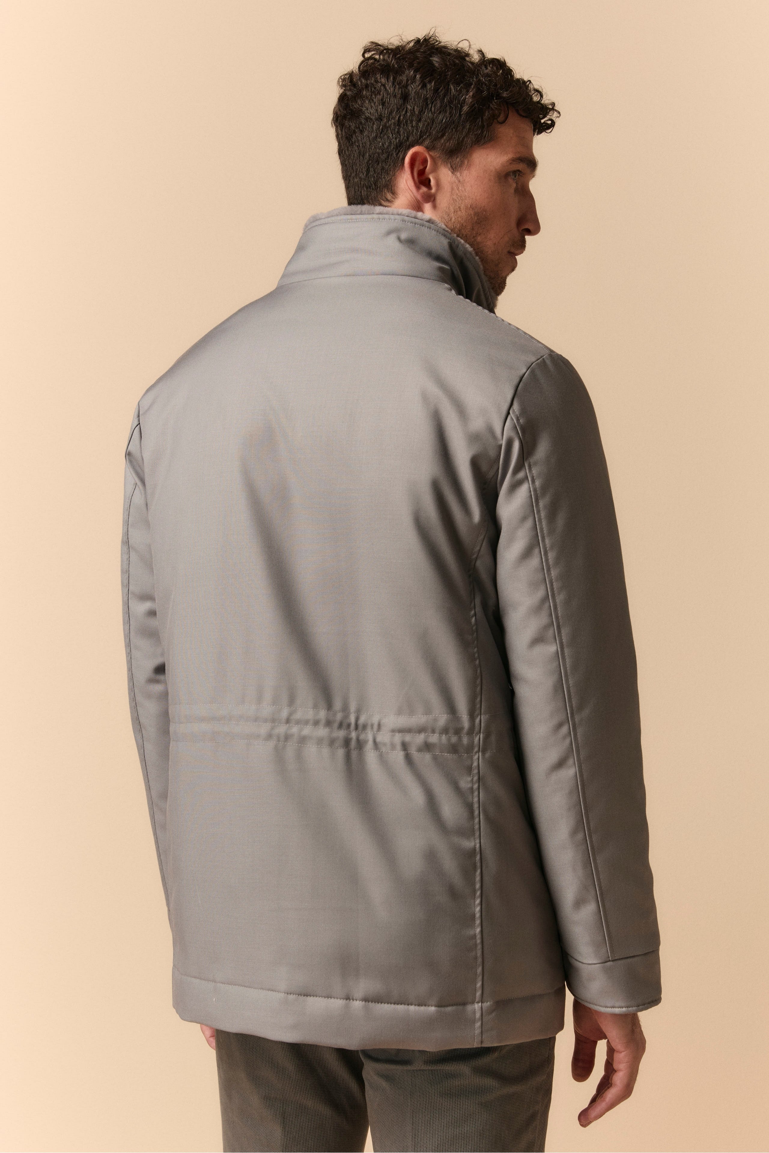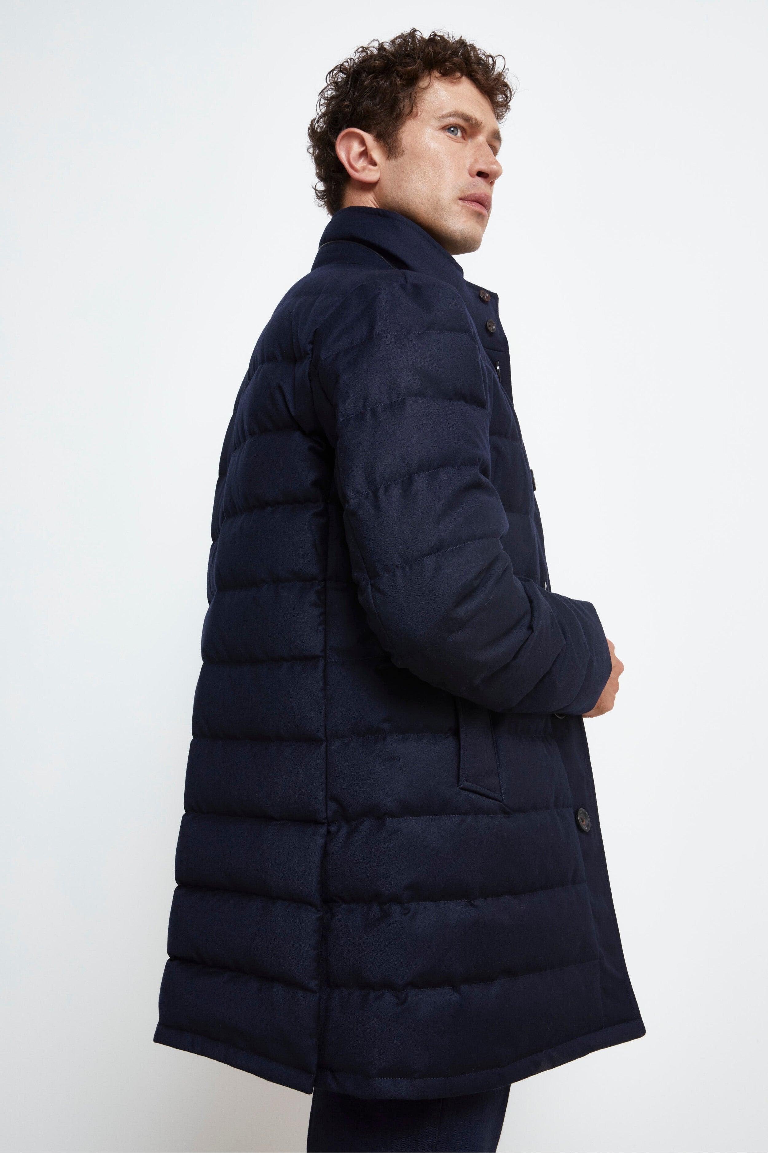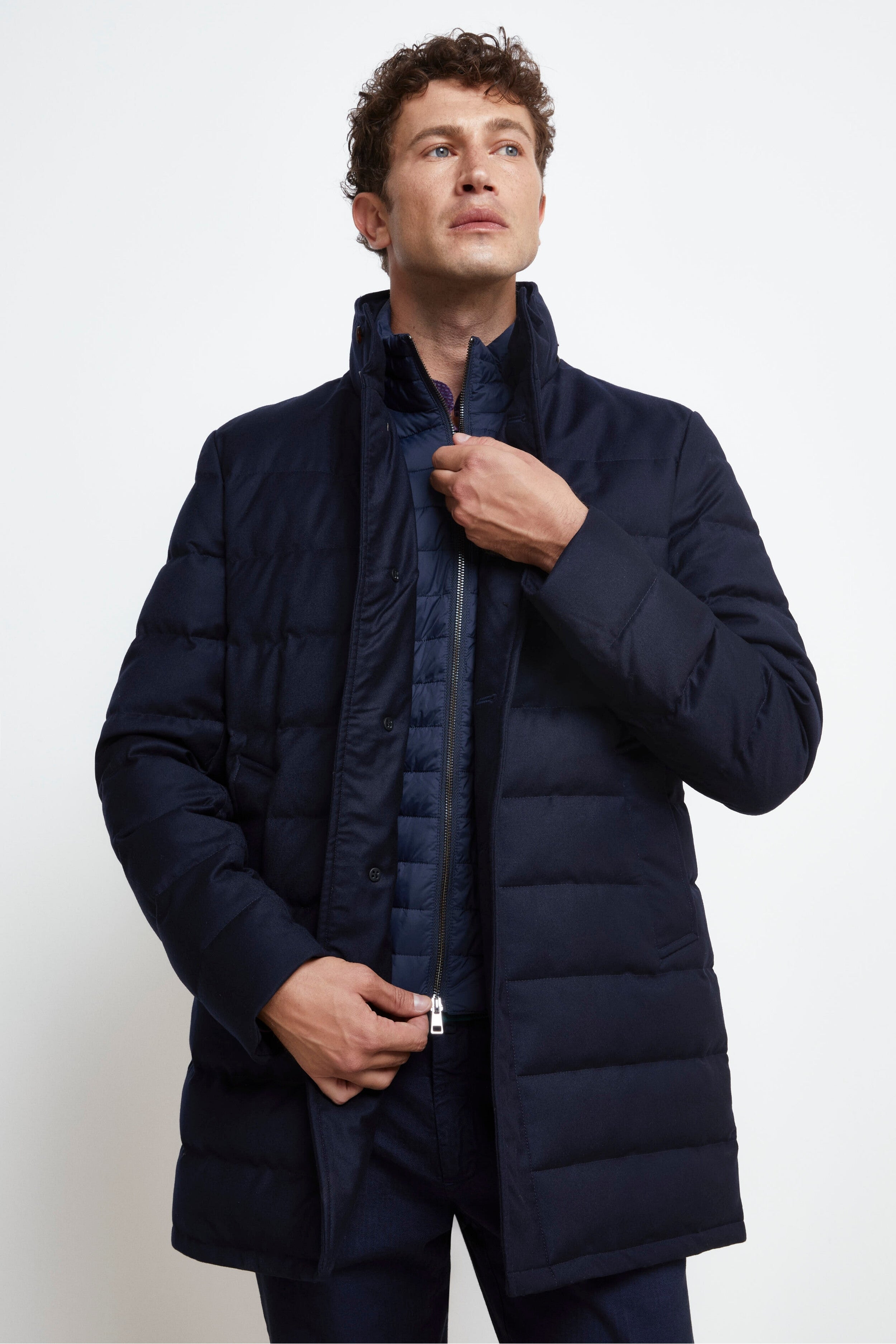 Langer Wollmix-Mantel mit Herausnehmbarer Weste und Kapuze - BLAU