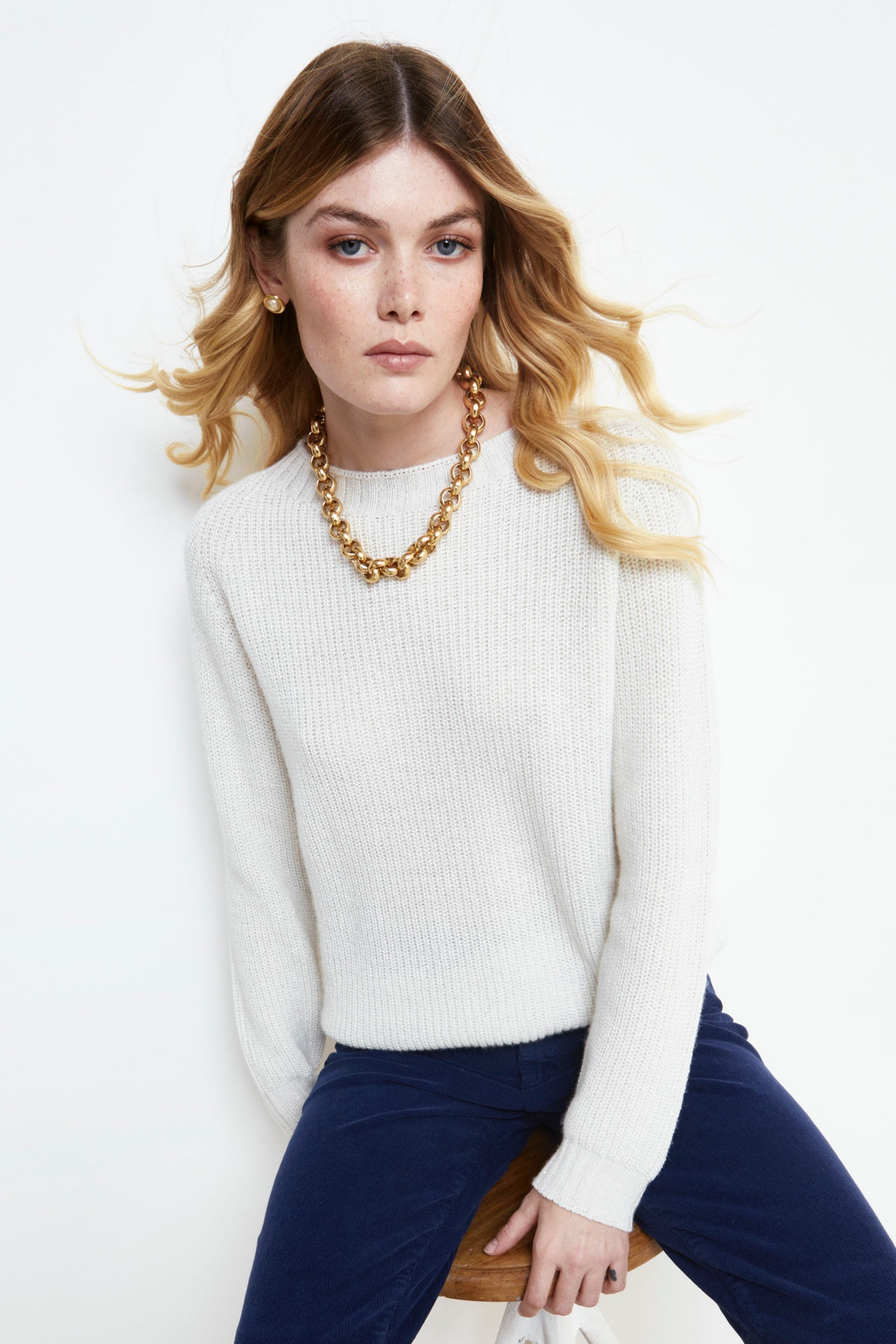 Pullover mit Stehkragen aus Wolle und Kaschmir - Creme weißPullover mit Stehkragen aus Wolle und Kaschmir - Creme weiß