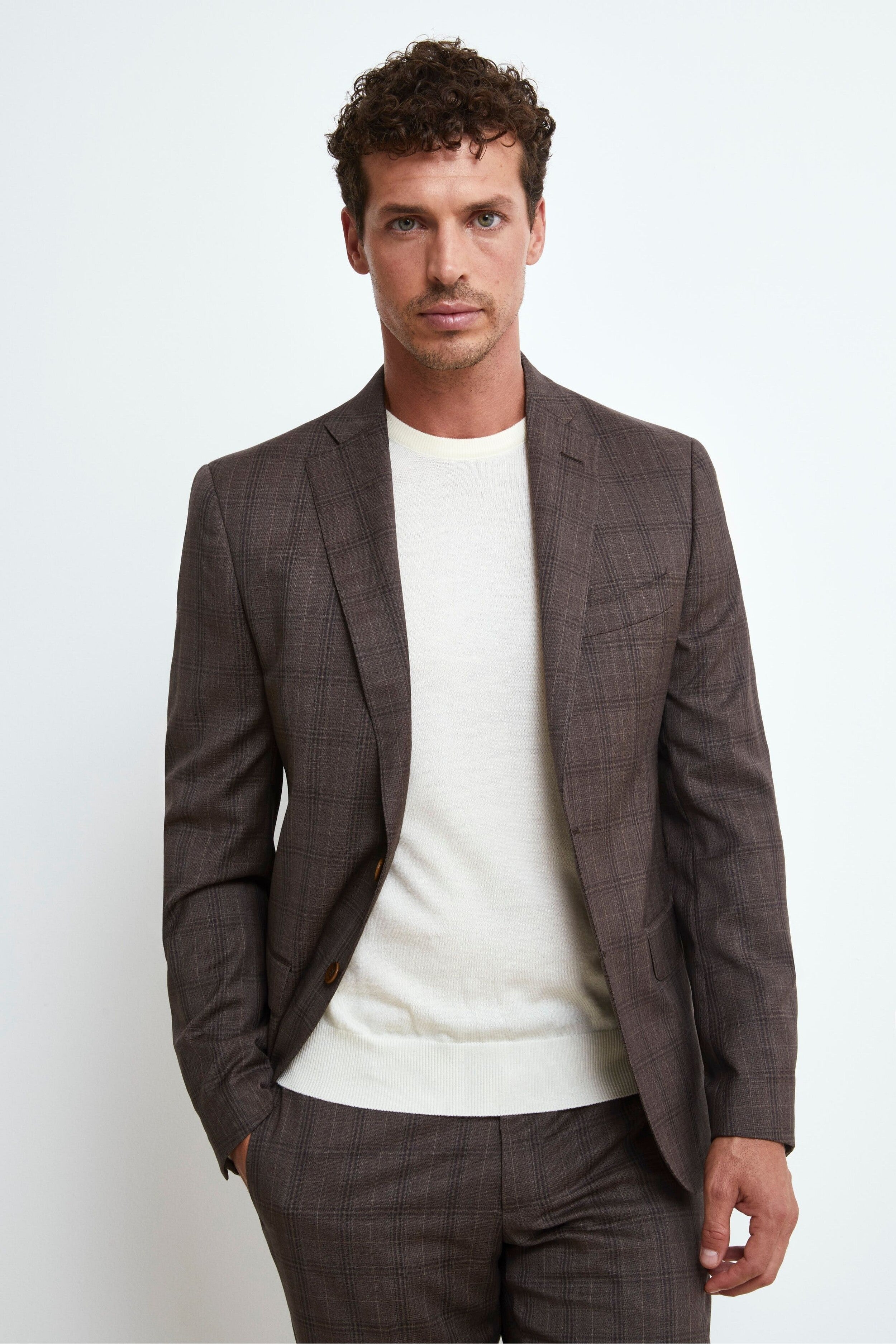 Costume Confort Fit à Carreaux en Laine Vierge - Motif marronCostume Confort Fit à Carreaux en Laine Vierge - Motif marron