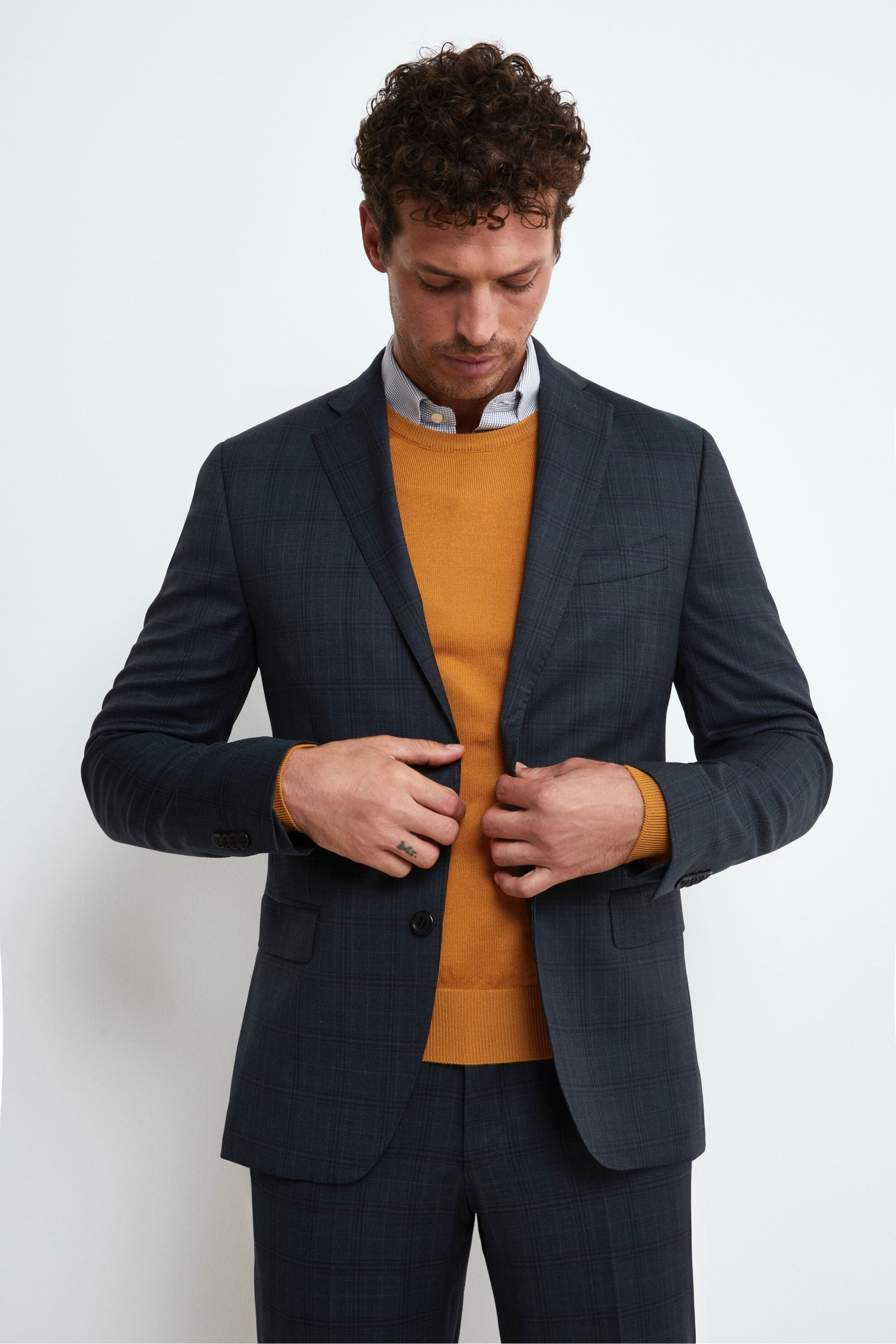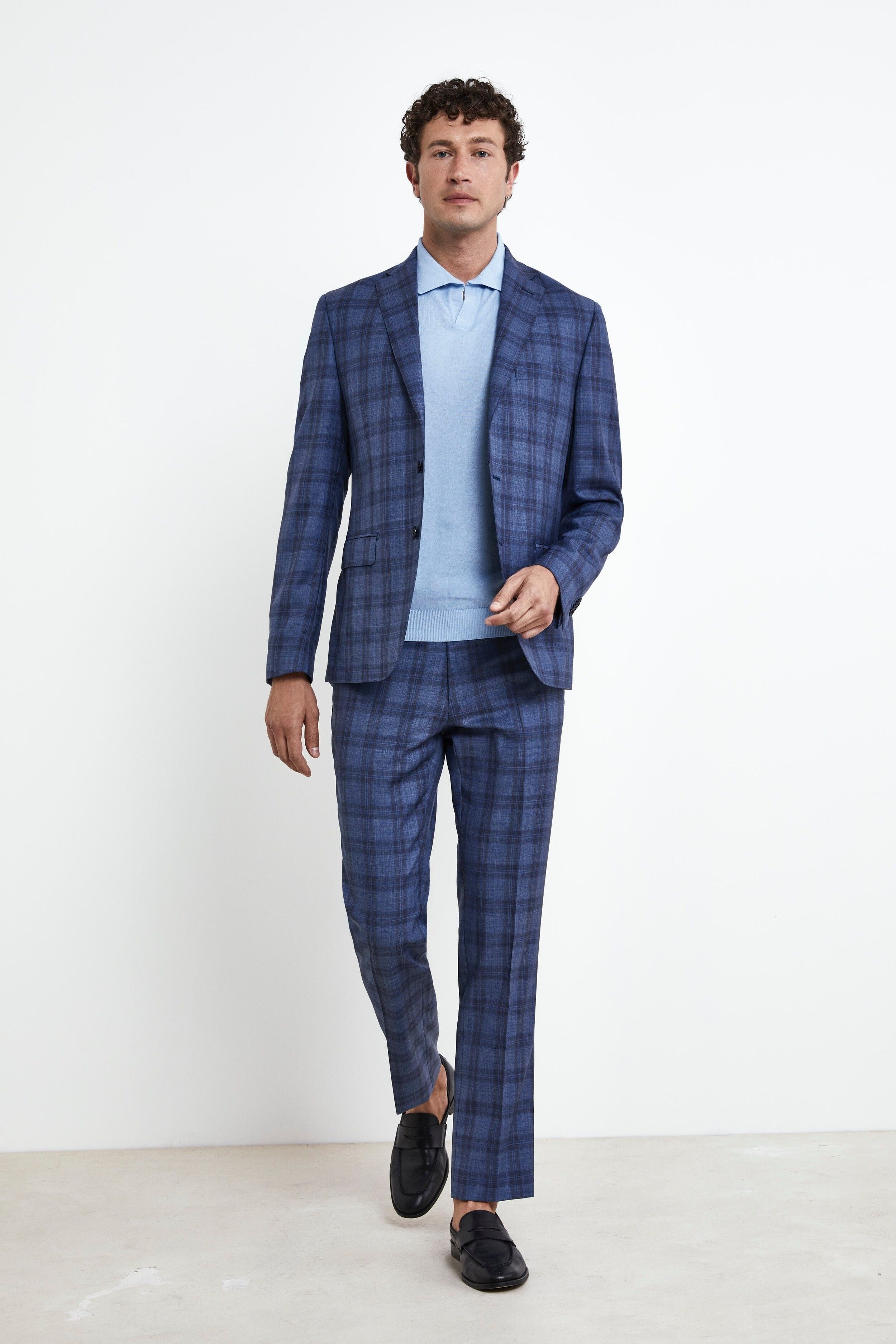 Drop 8Costume slim à carreaux doublé en laine vierge - Chèque bleuCostume slim à carreaux doublé en laine vierge - Chèque bleu