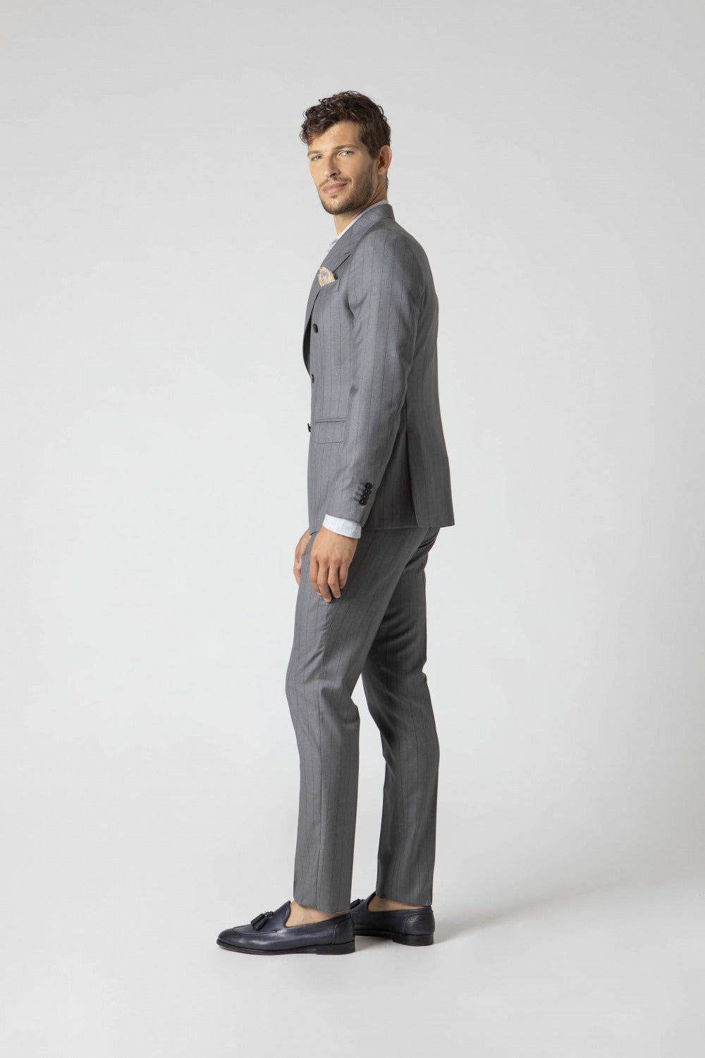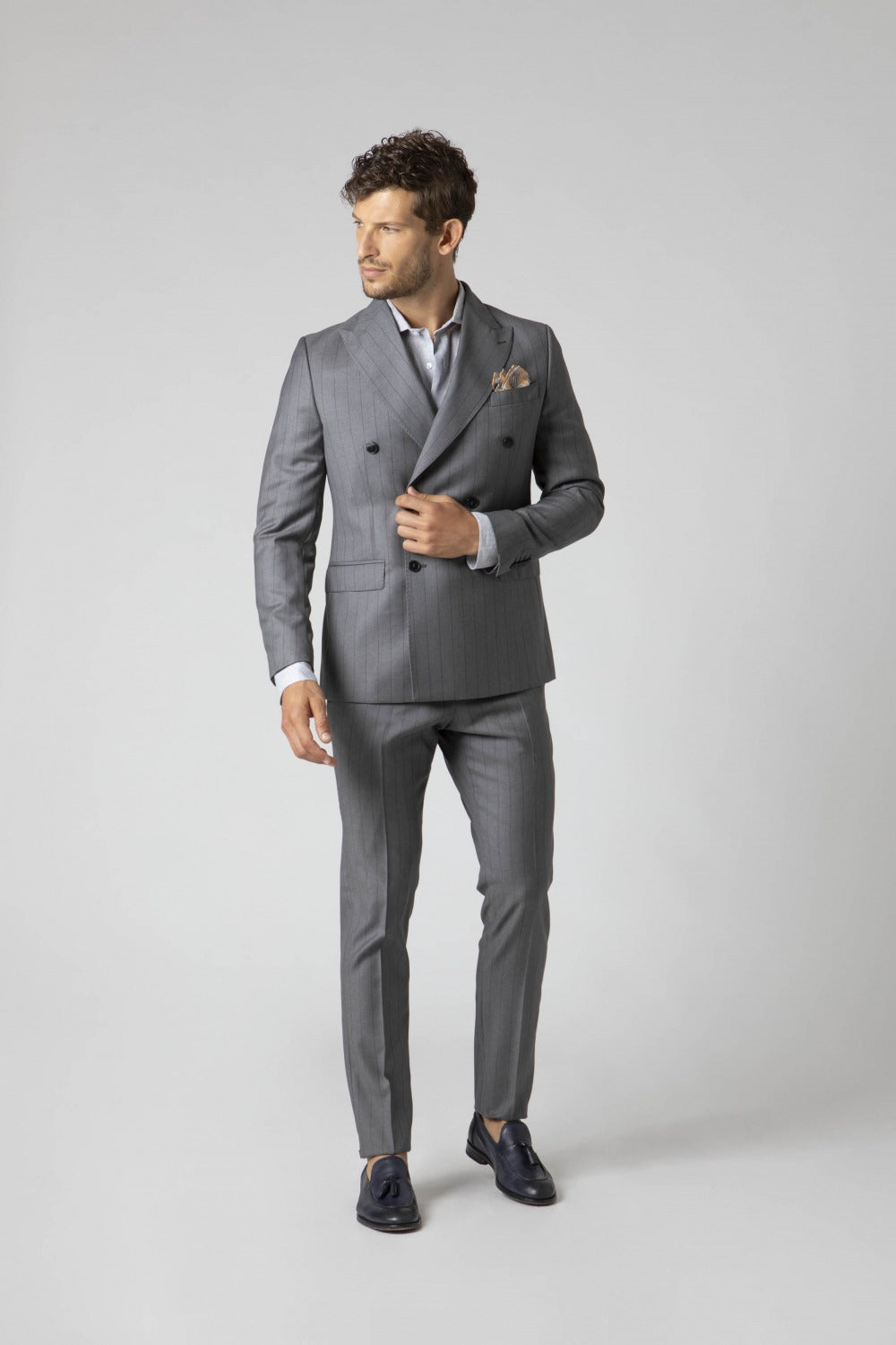 Pour une touche de sophistication et de classe supplémentaire, optez pour un costume à rayures pour homme. Son élégance réside dans l'équilibre parfait entre tradition et modernité, raffinement et style contemporain. Ce type de costume élégant se distingue par ses lignes épurées et son design sophistiqué, caractérisé par de fines rayures qui donnent au tissu une texture distinctive et unique. Choisissez votre costume gris à rayures et portez-le avec une chemise en cachemire et un collier ras-de-cou : vous serez prêt à marquer toutes les occasions, qu'il s'agisse d'une cérémonie ou d'un dîner officiel.