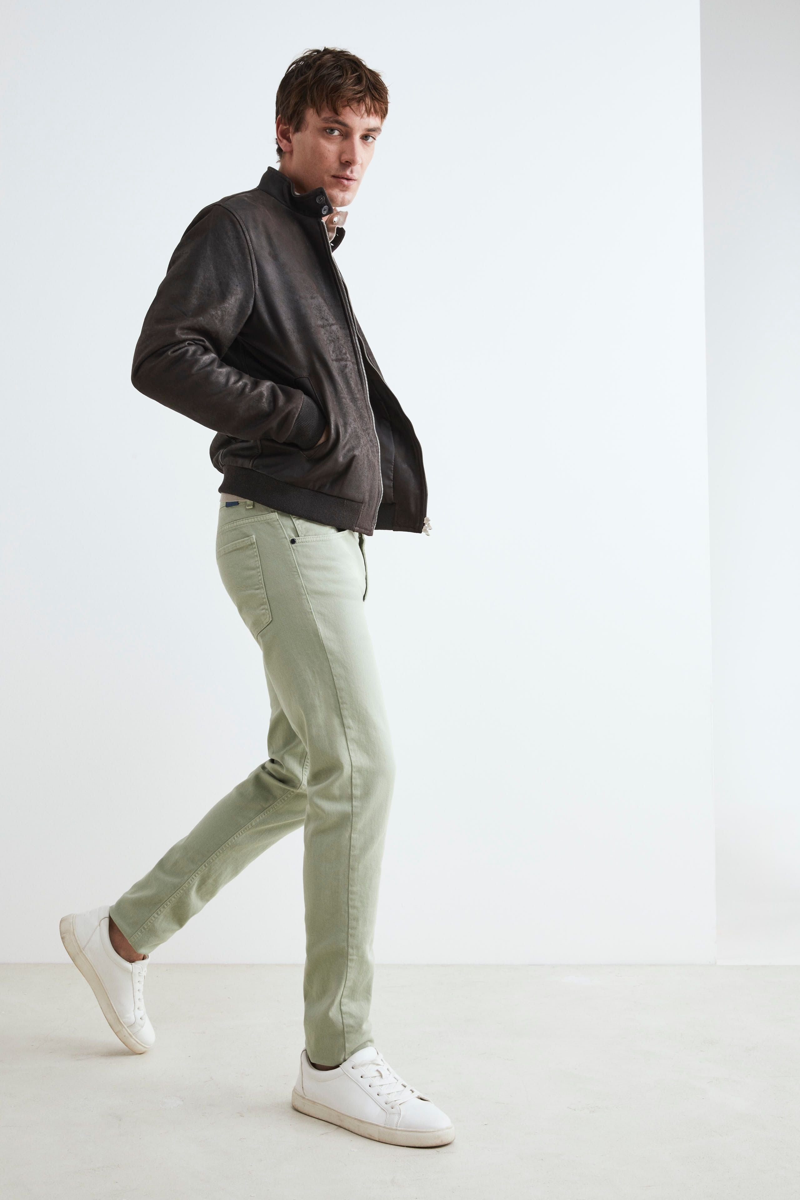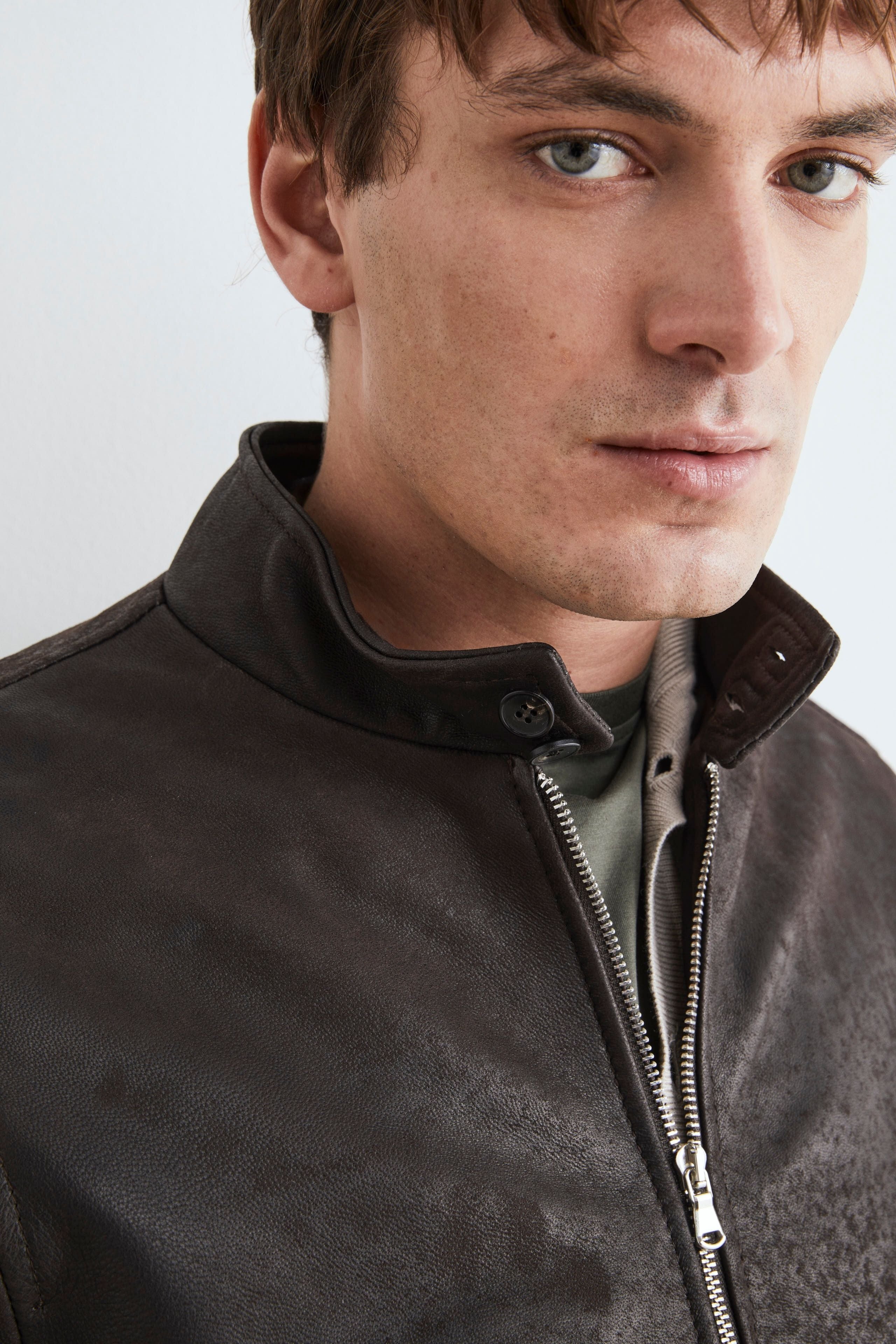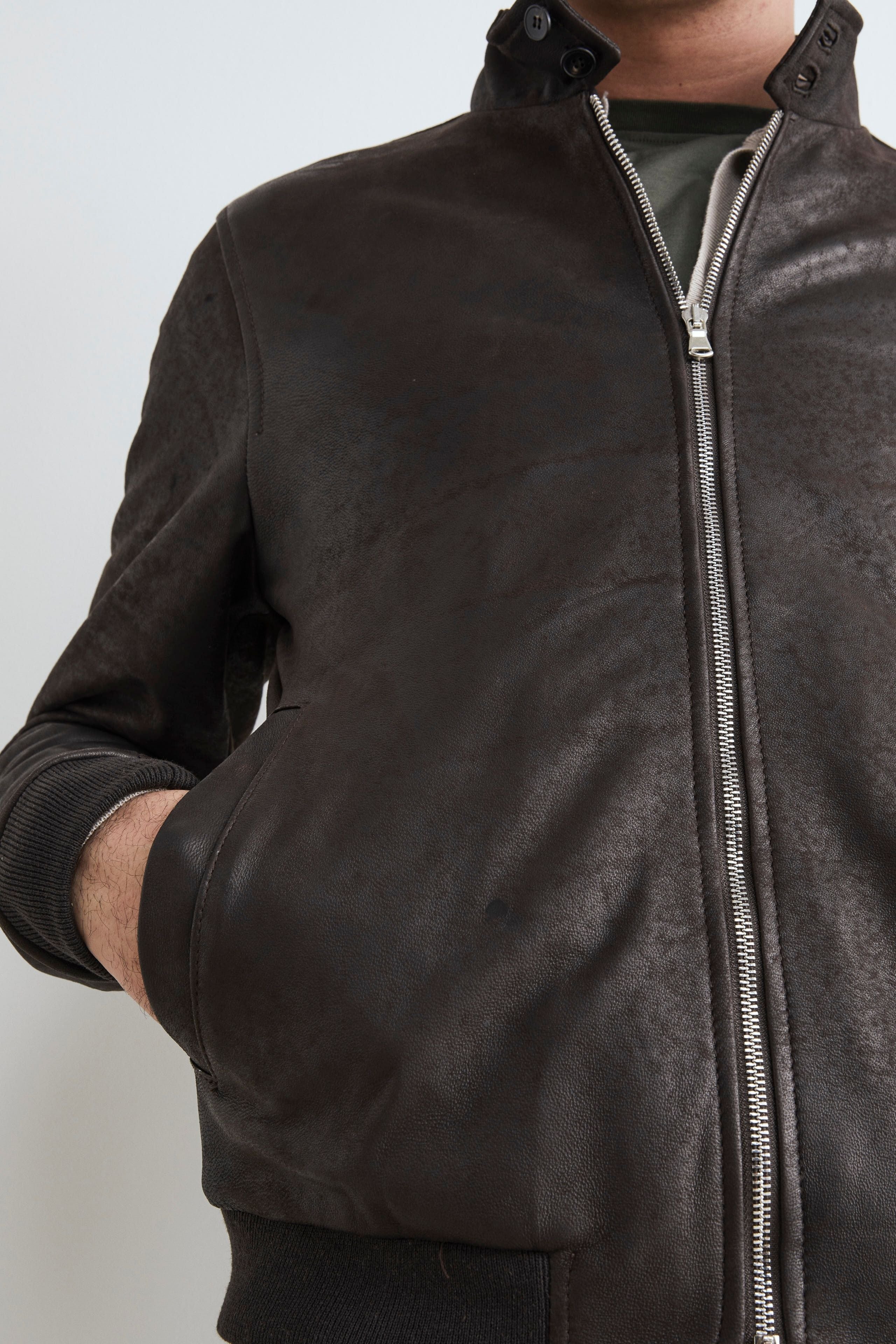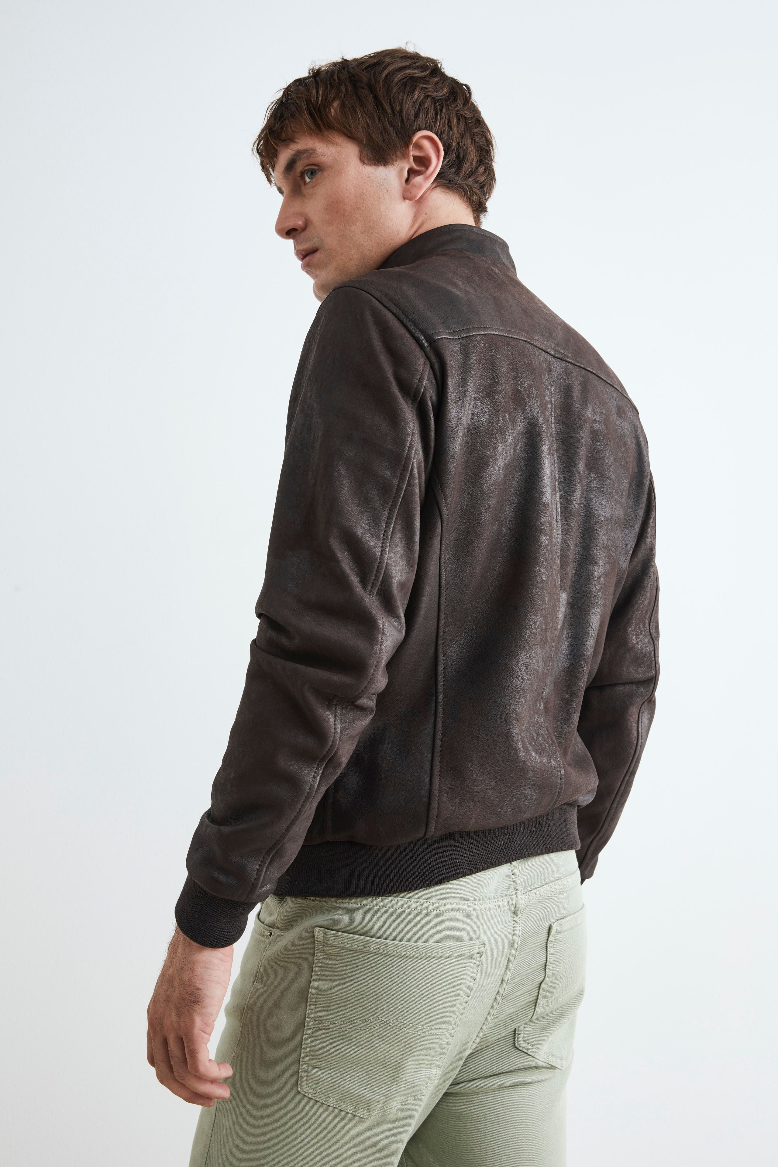 Veste bombardier en cuir pour hommes - Marron foncé