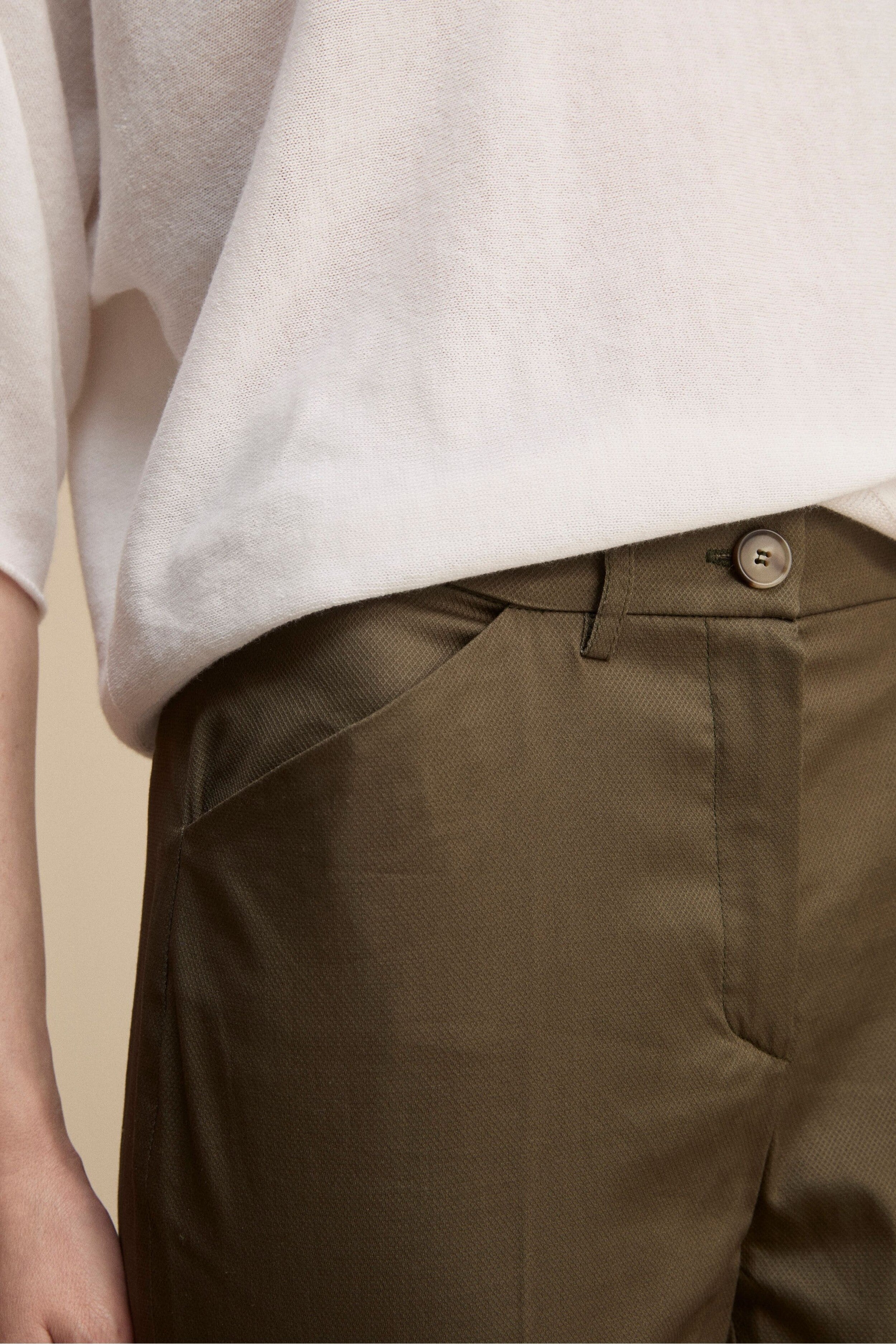 Cotton Cigarette Piquet Pants - Military green
