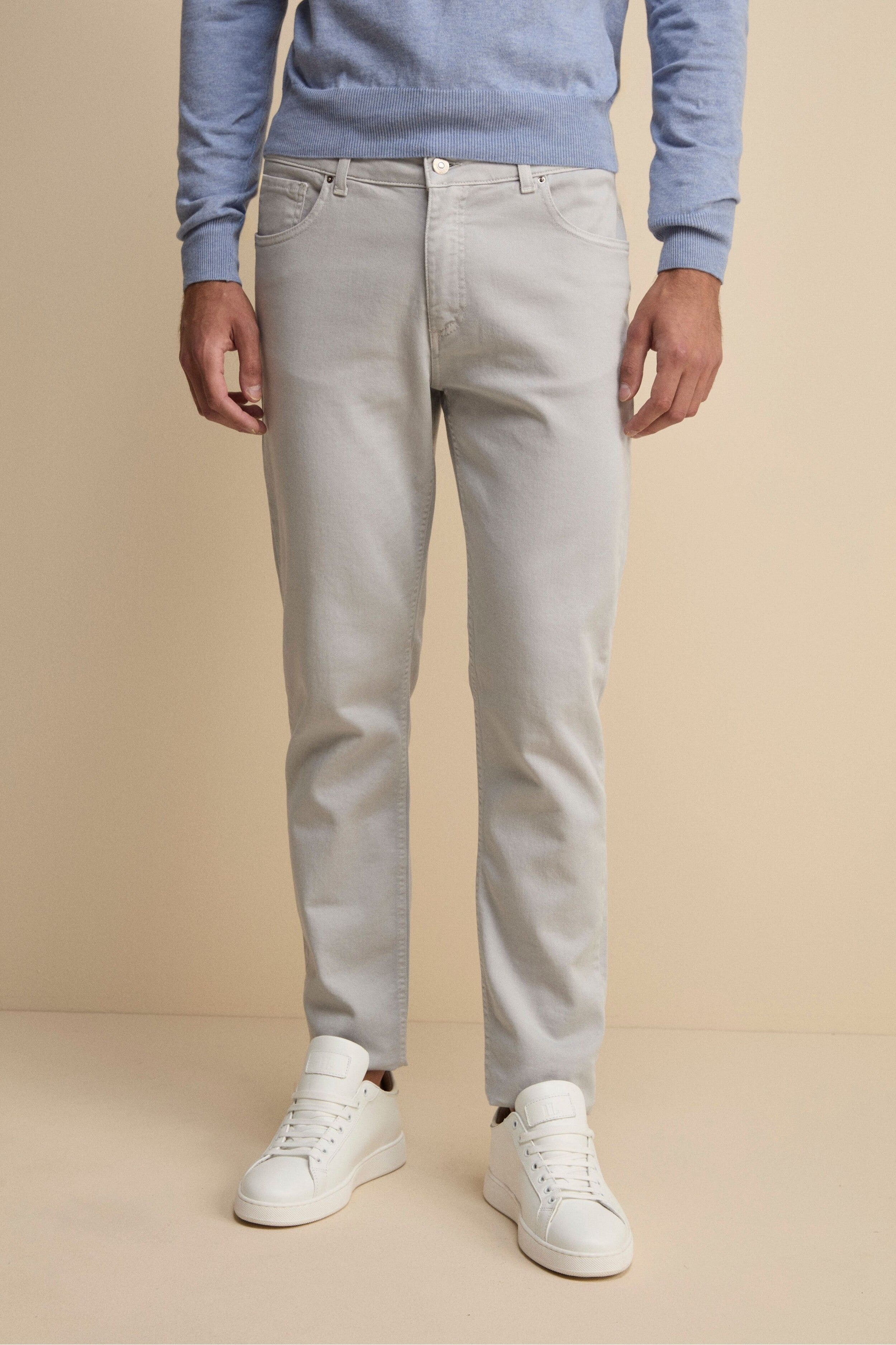 Five-Pocket Slim Fit Denim Trousers - Light grey