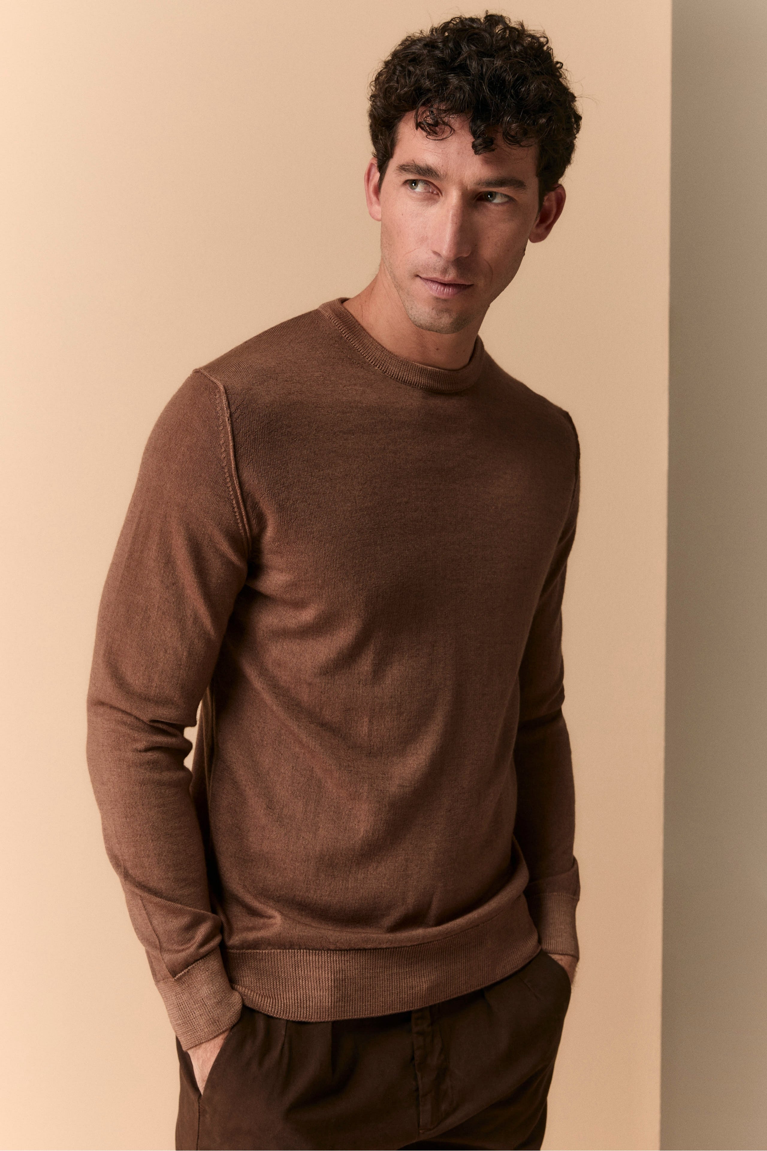 TABACCOIl girocollo uomo in lana merino extrafine è un capo essenziale della collezione IL Lanificio, realizzato al 100% in lana merino con una finezza 14, che assicura morbidezza, comfort e durabilità. La vestibilità regolare rende questo capo versatile e perfetto per ogni occasione, adattandosi facilmente a diversi stili, sia casual che più formali. Le cuciture a vista sulle maniche aggiungono un dettaglio ricercato che sottolinea l’attenzione ai particolari e la qualità artigianale che contraddistingue ogni capo della collezione IL Lanificio. La lana merino extrafine garantisce un’eccellente traspirabilità e un isolamento termico naturale, rendendolo ideale per tutte le stagioni. Un capo che combina eleganza e funzionalità, la maglia girocollo in lana merino extrafine è perfetta per chi cerca comfort e stile in un unico prodotto. Il modello è alto 189 cm e indossa la taglia 50.