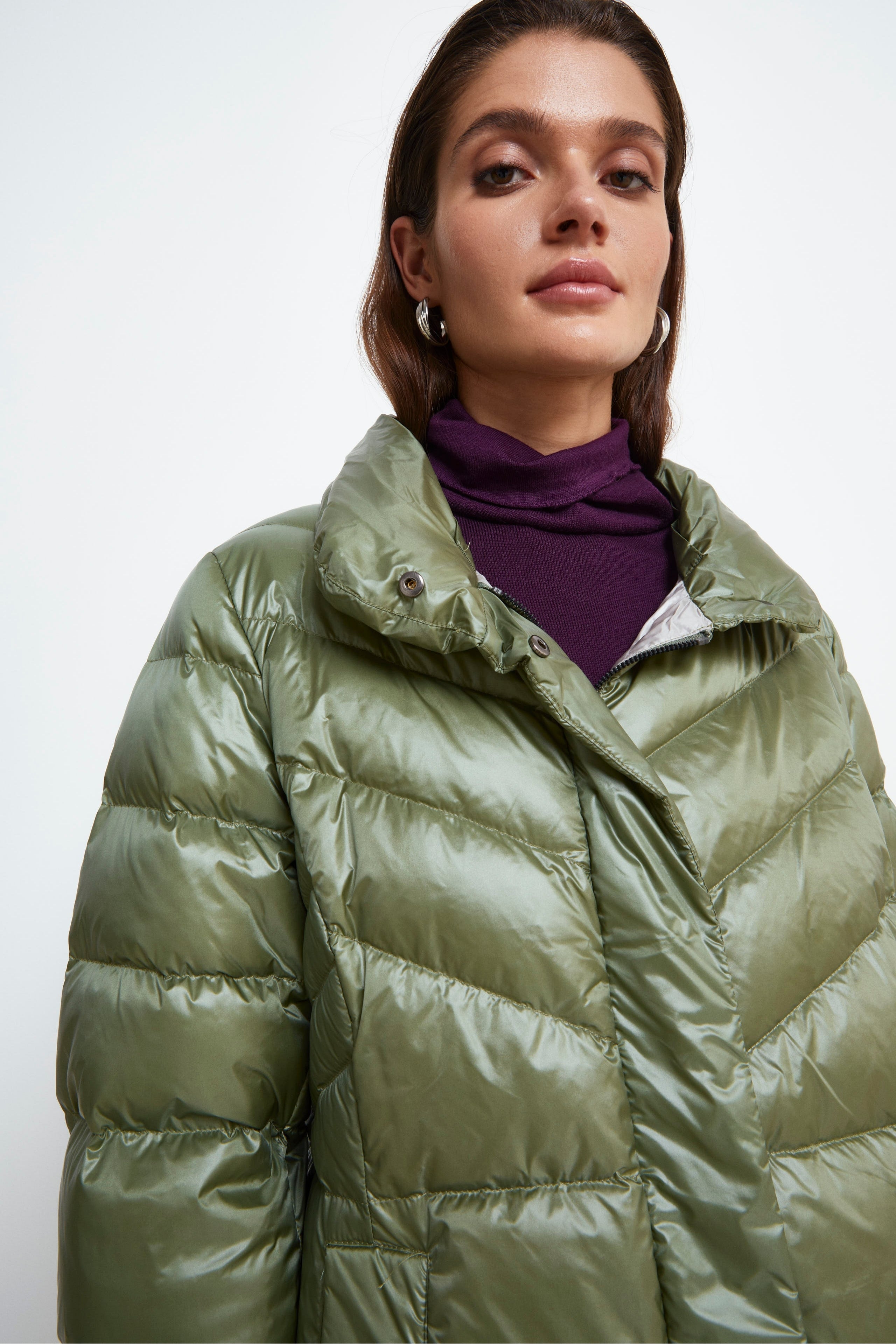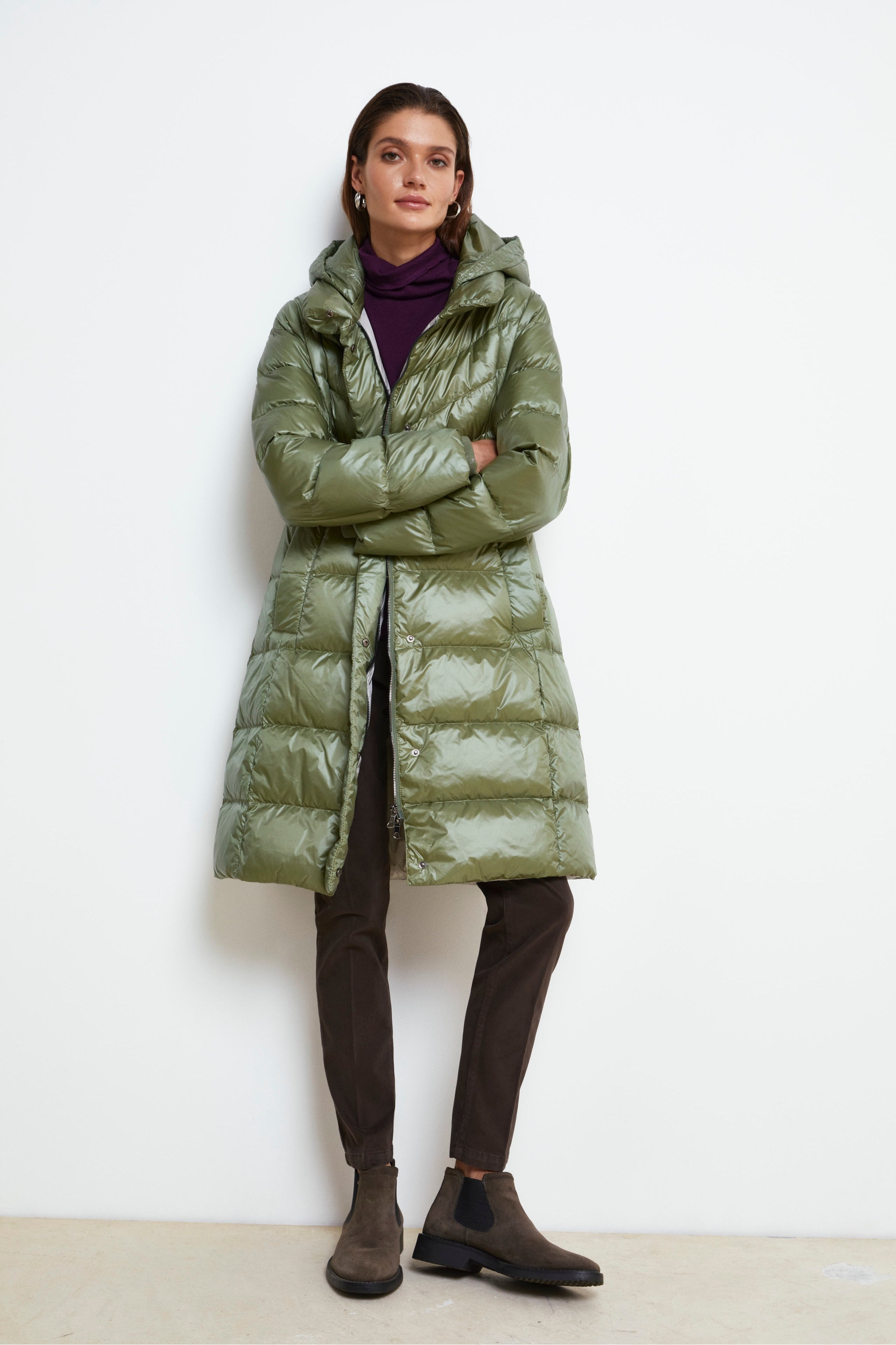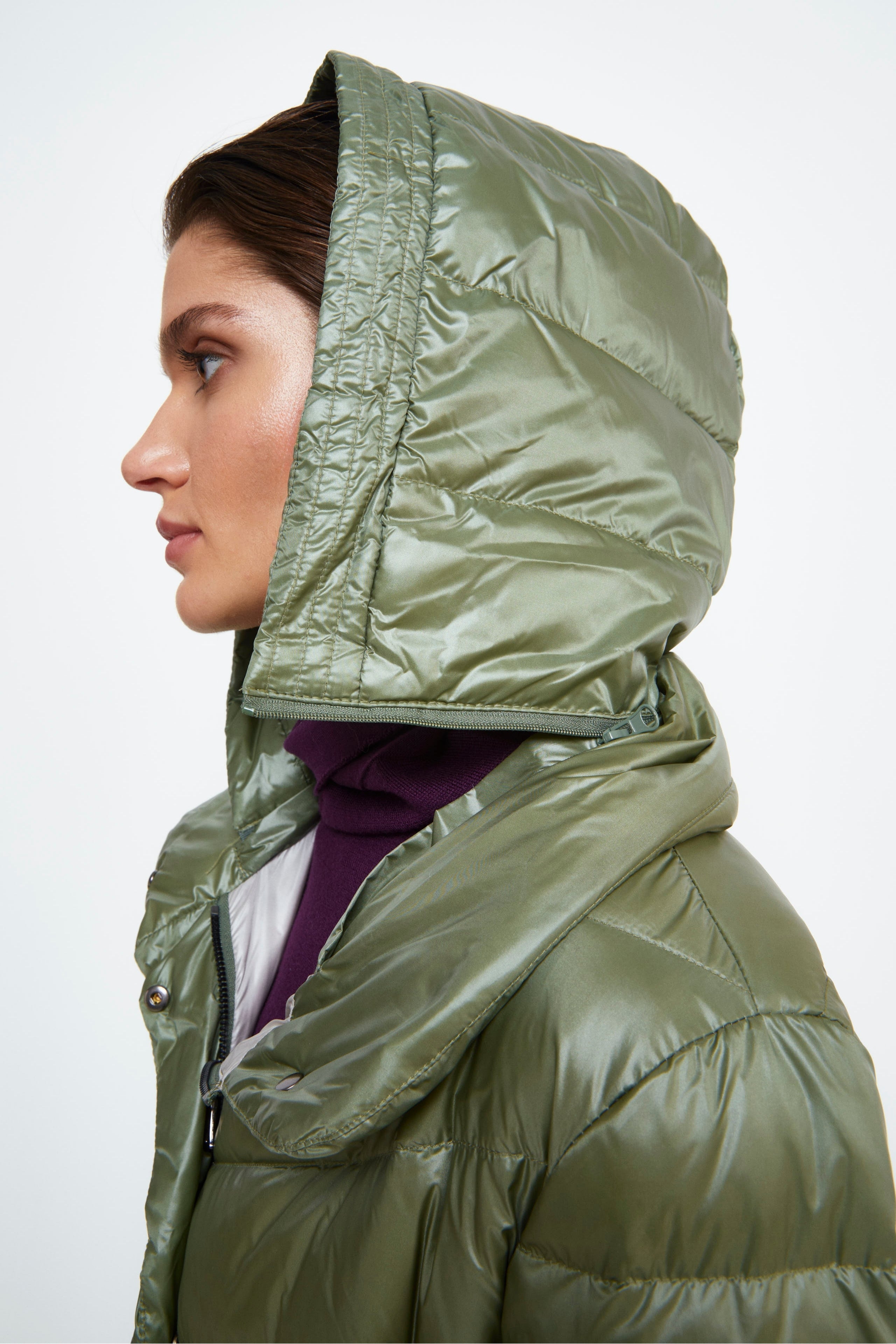 Hooded Down Jacket - Sage green