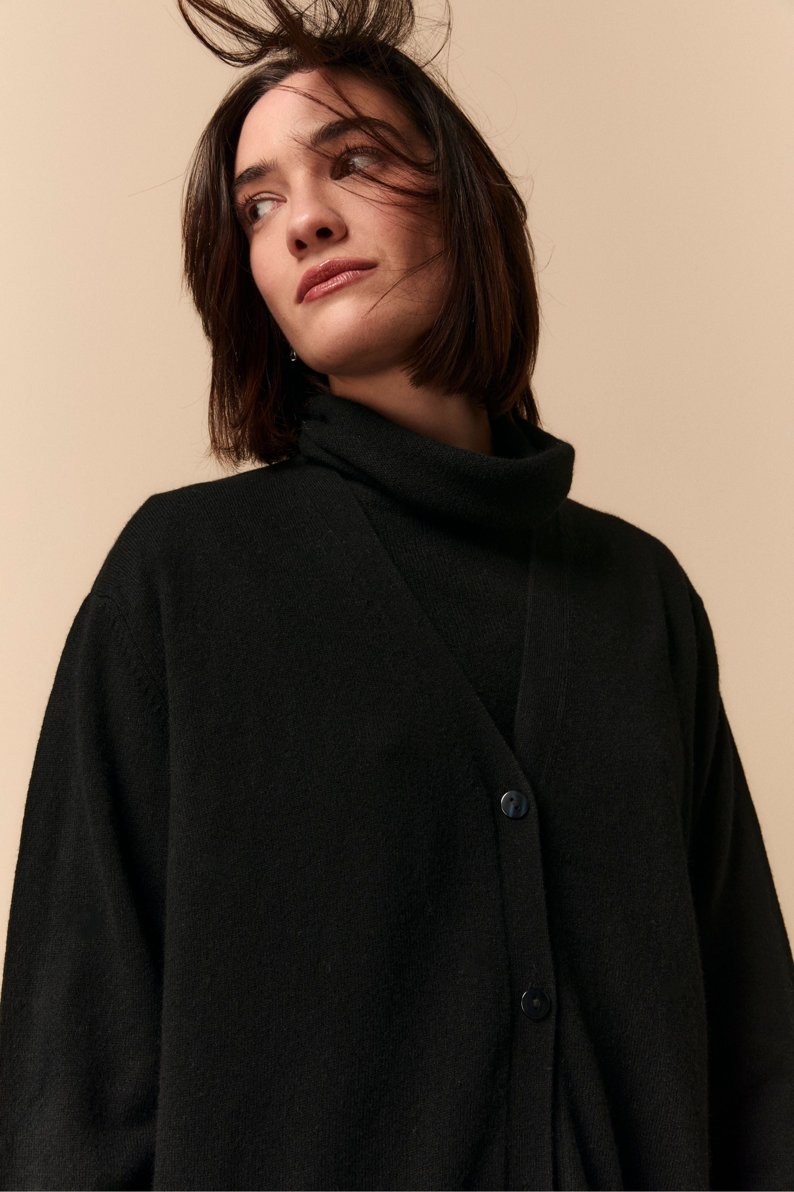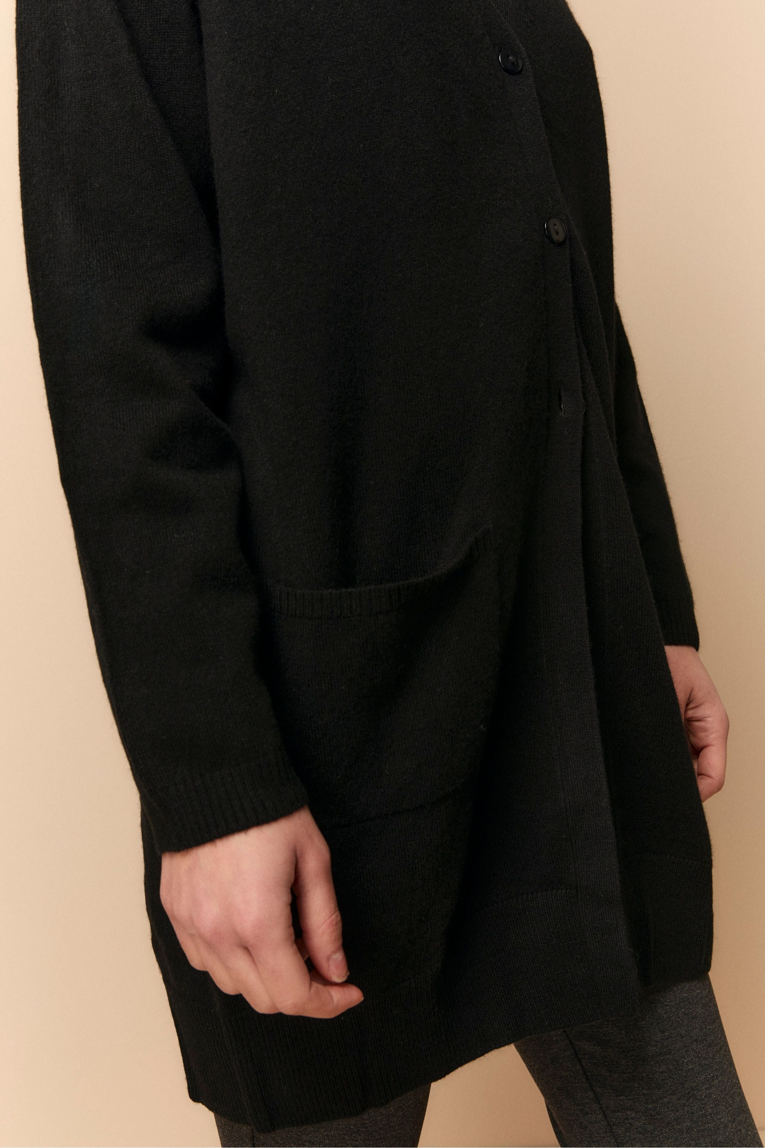 Long Cardigan with Pockets in Wool and Cashmere - BLACK