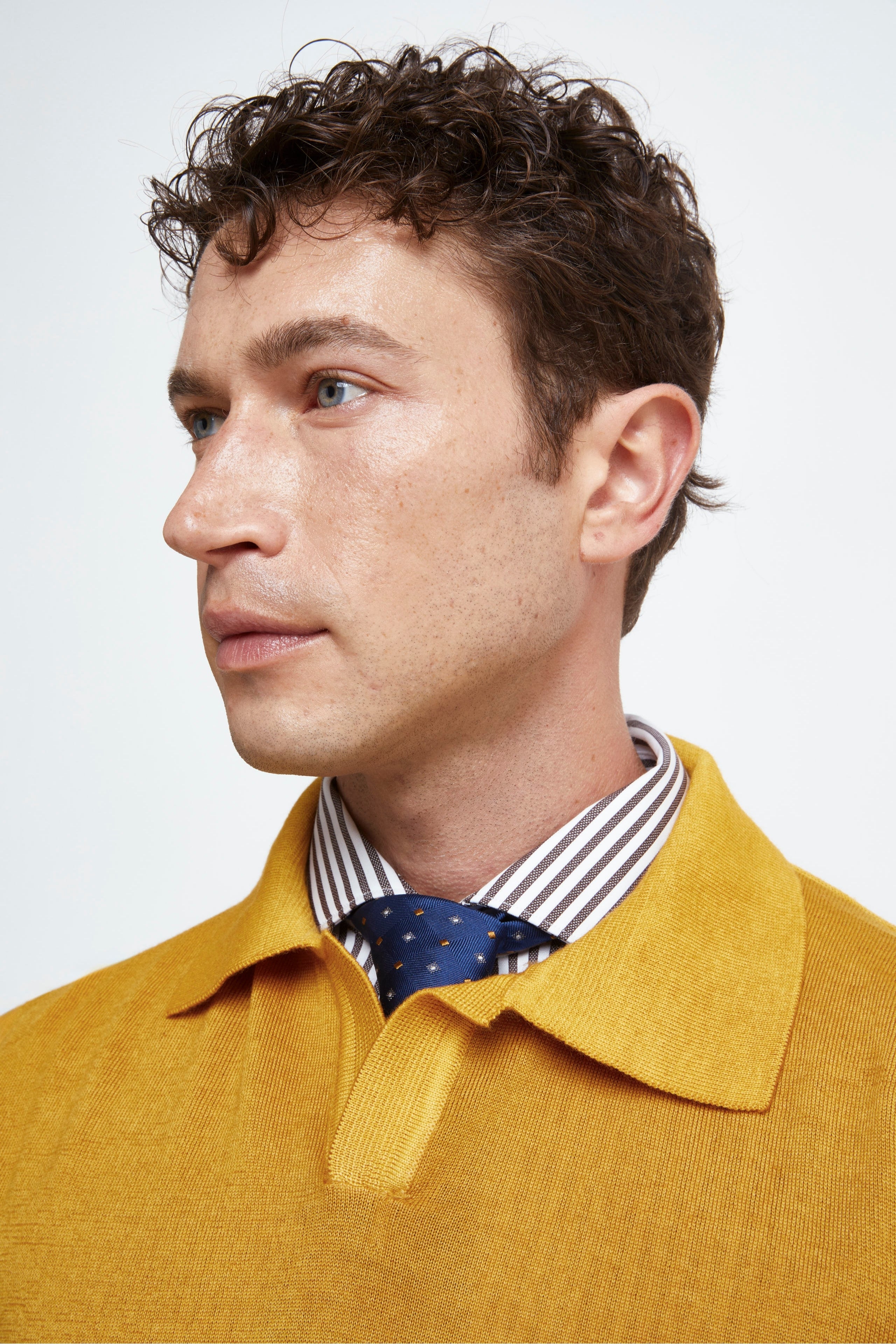 Merino wool derby polo shirt - Mustard
