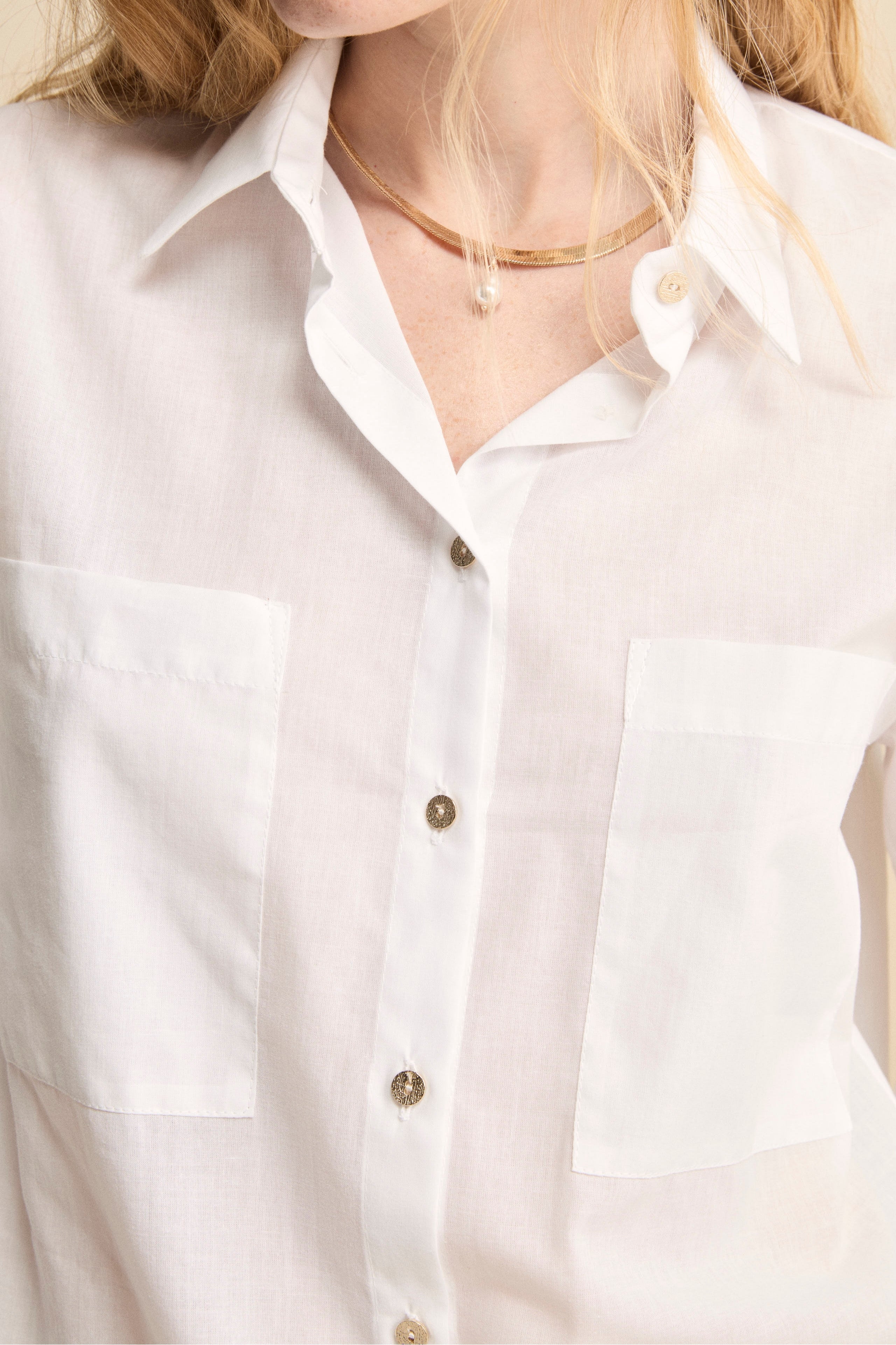 Oversized Cotton Shirt with Drawstring - CREAM