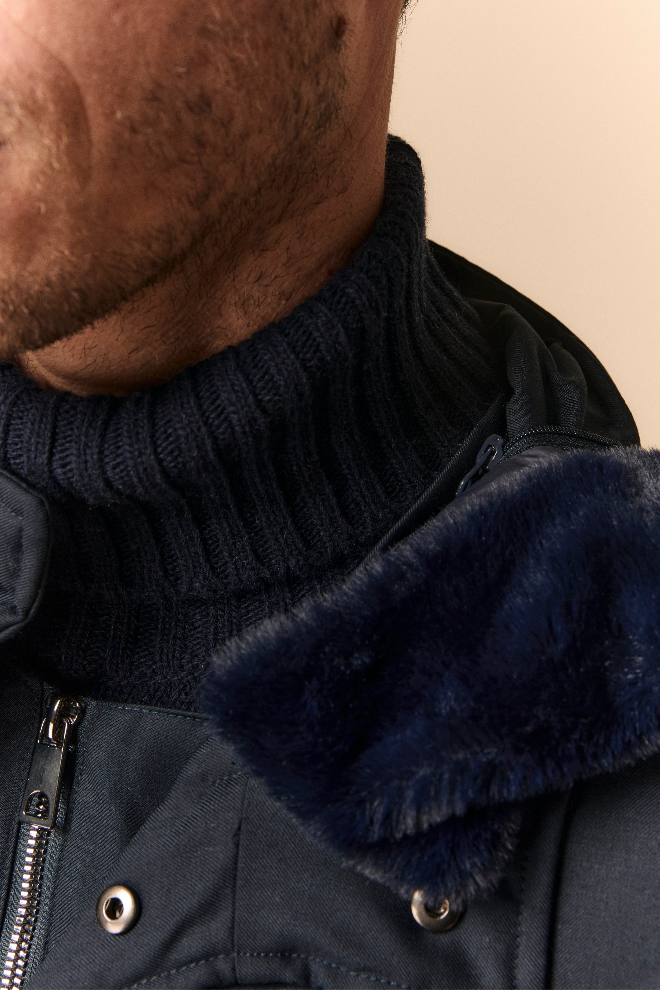 Padded Jacket with Fur Collar - BLUE