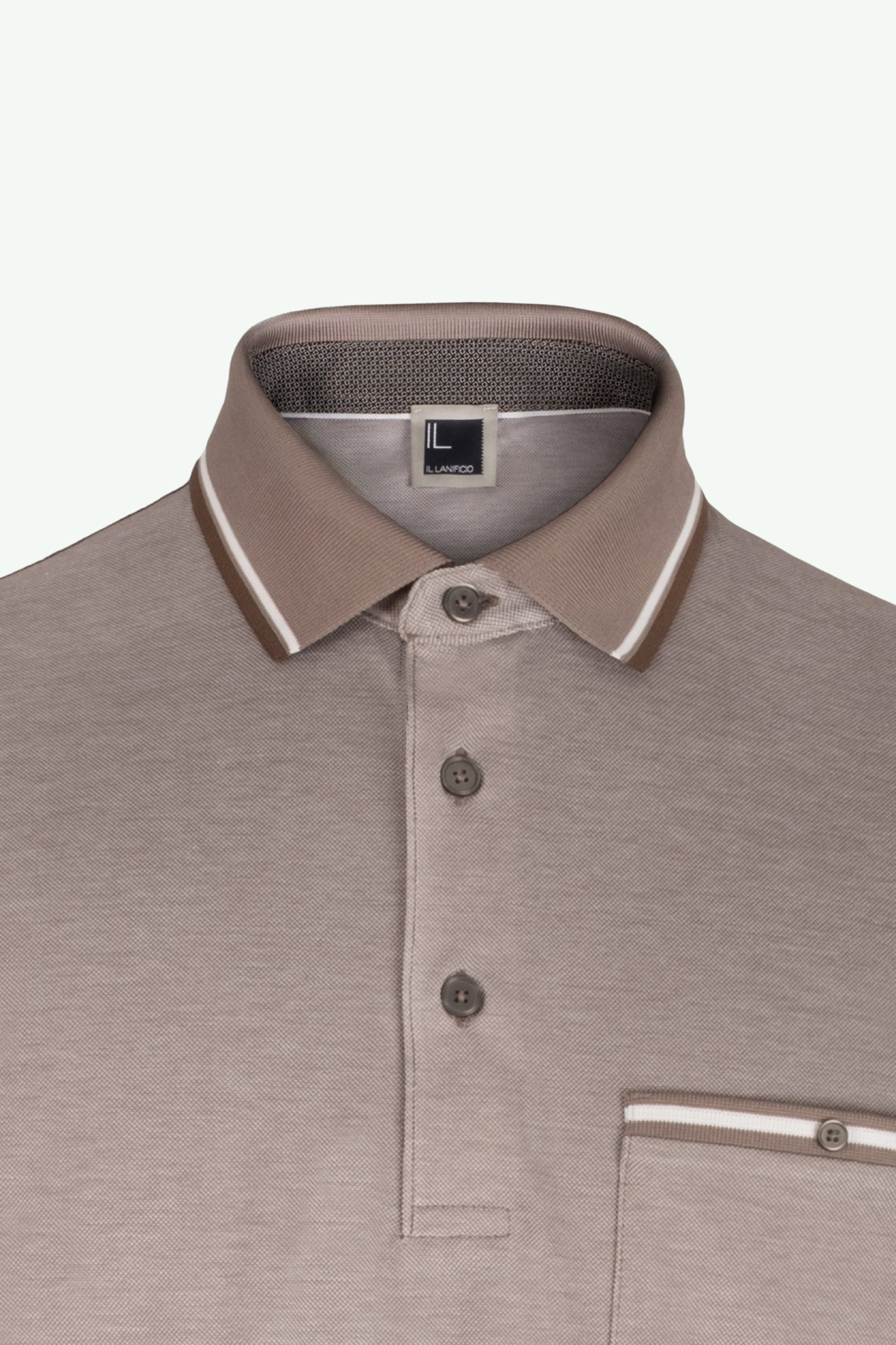 Piqué Polo Shirt in Mercerised Cotton with Chest Pocket - gray