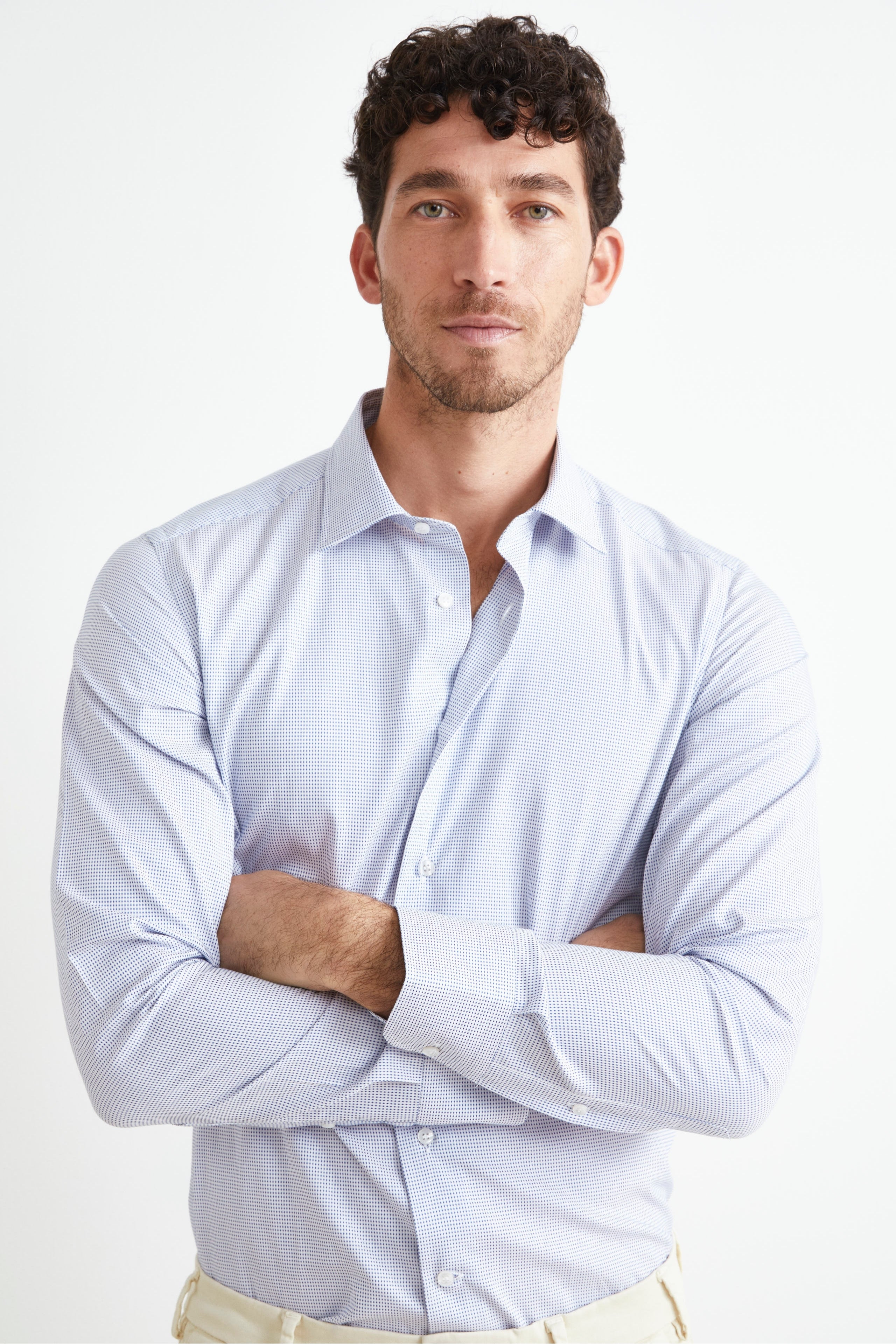 Slim Fit Micro Pattern Shirt - White-Blue pattern