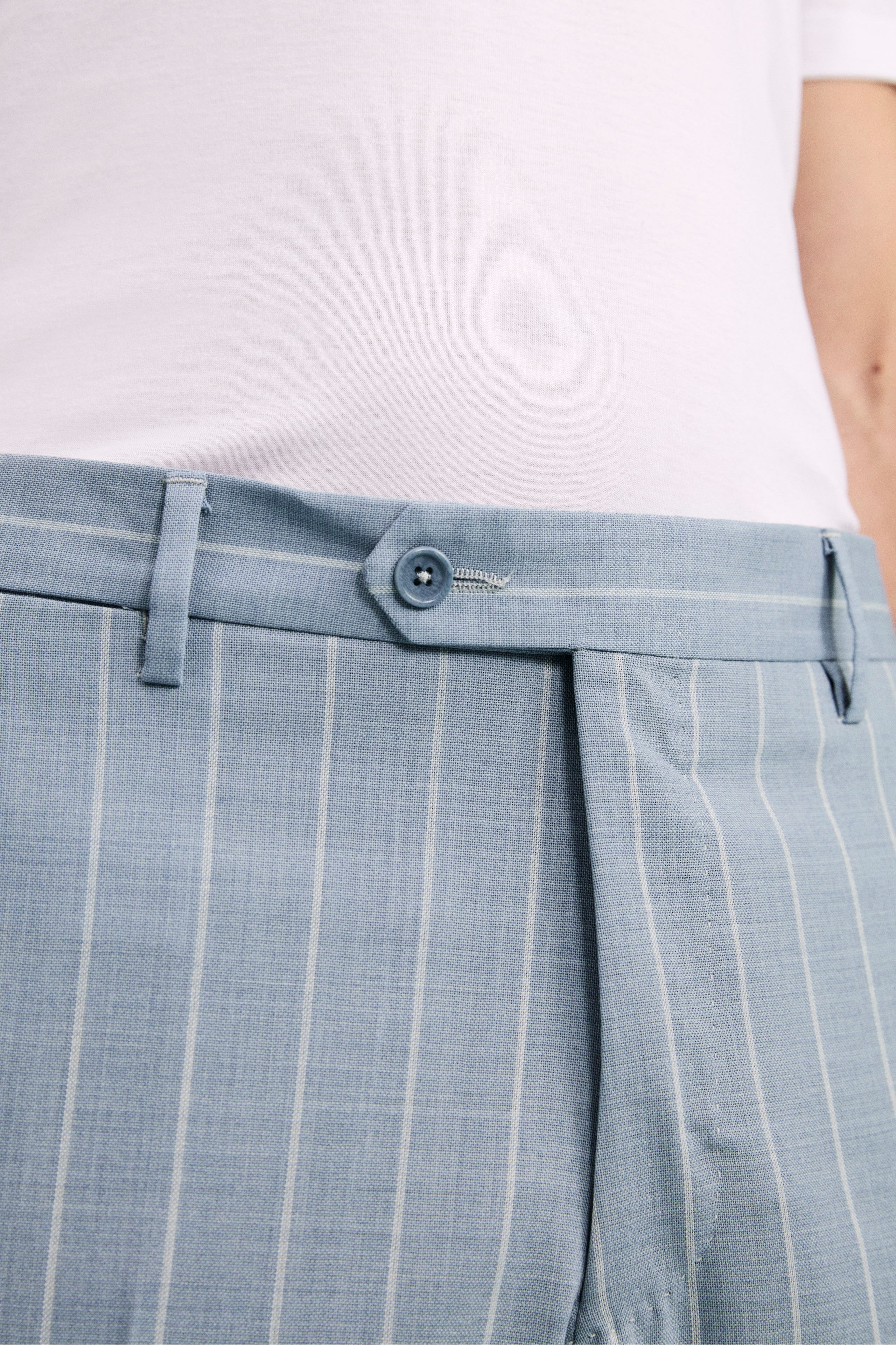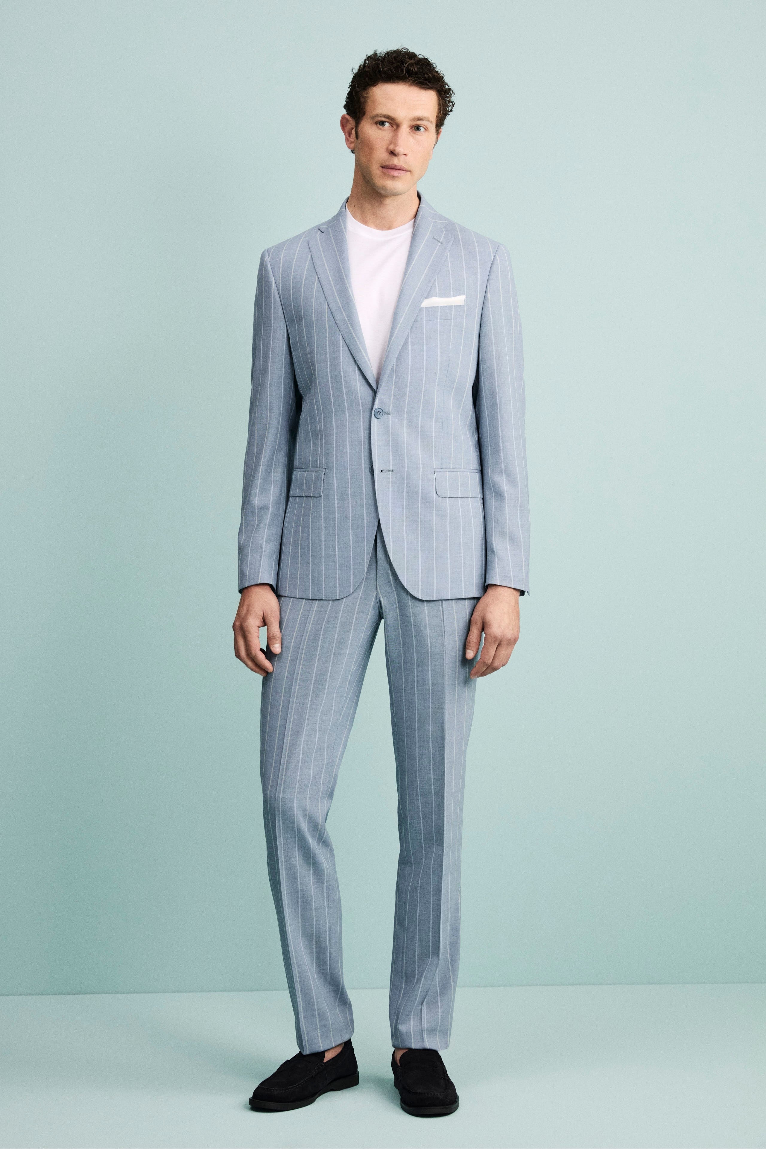 Slim Fit Single-Breasted Pinstripe Suit in Virgin Wool - Light blue stripe