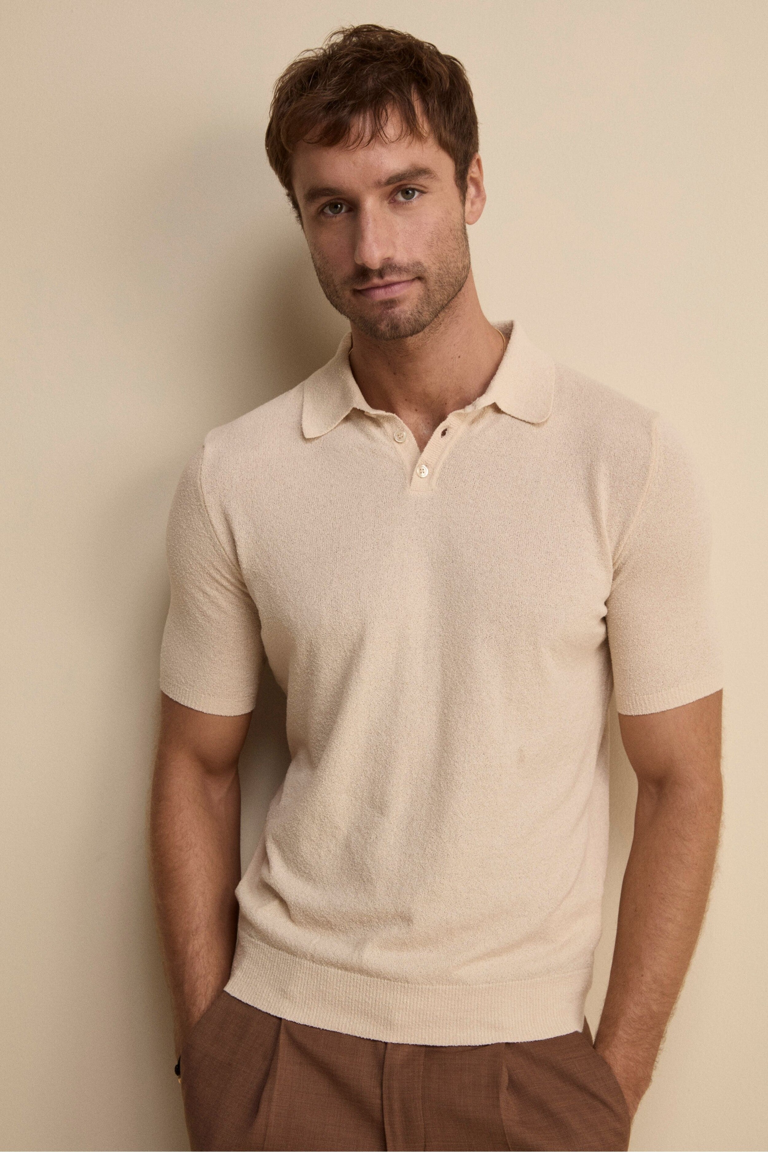 Terry Cloth Bouclé Polo Shirt - Cream white