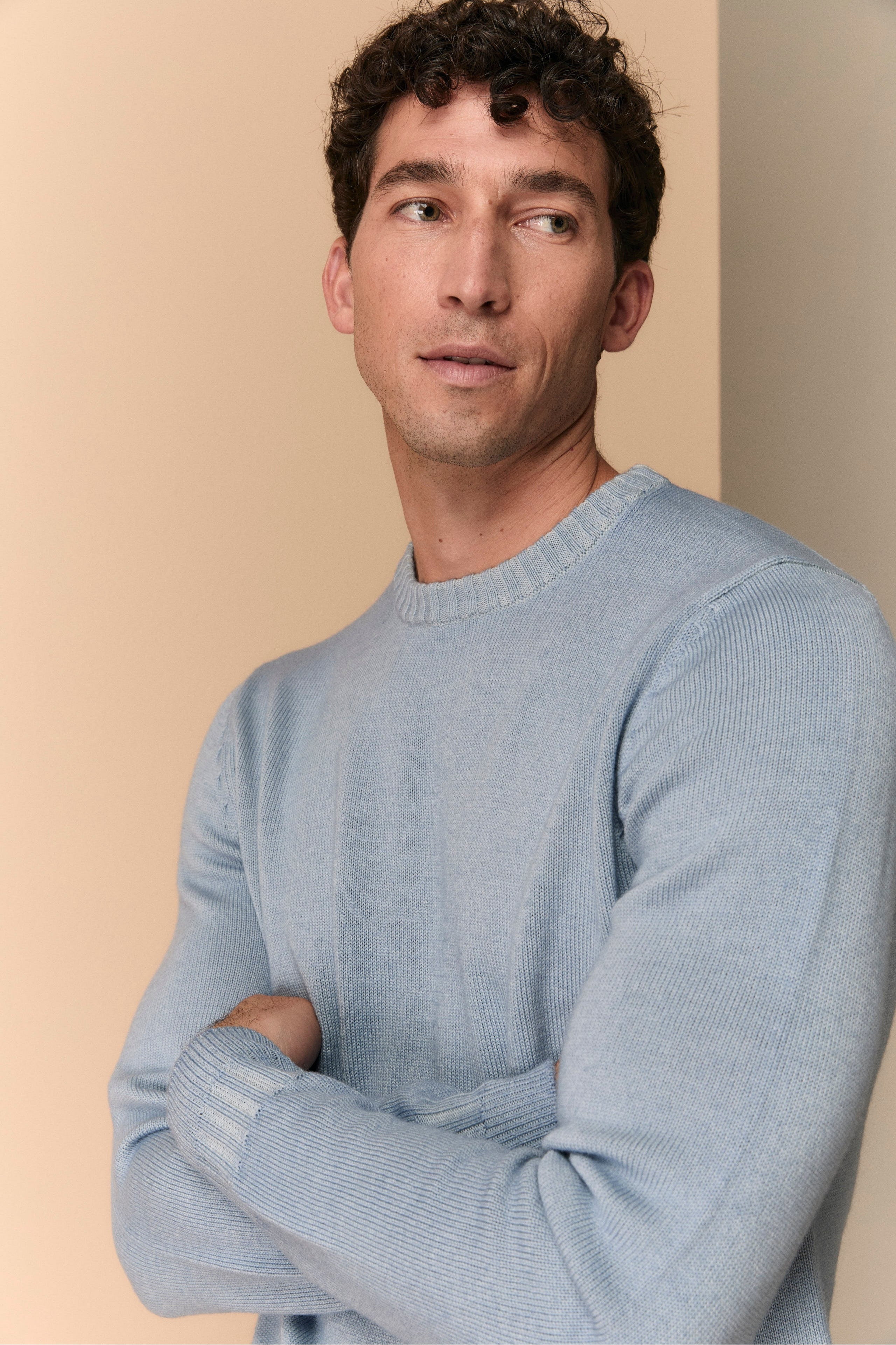Vintage Sweater in Extrafine Merino Wool - Light blue