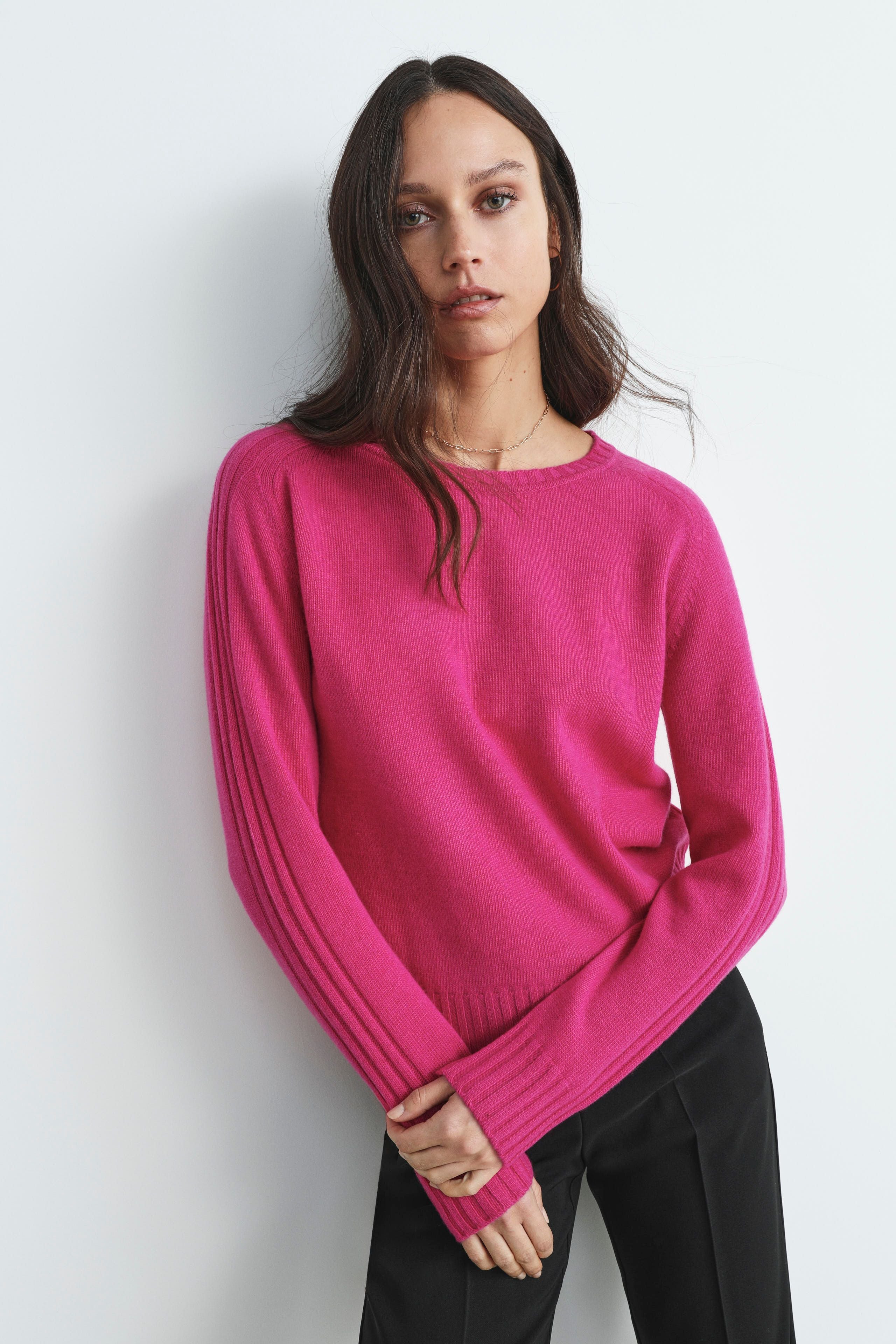Wool and cashmere sweater with boat neckline - PINK